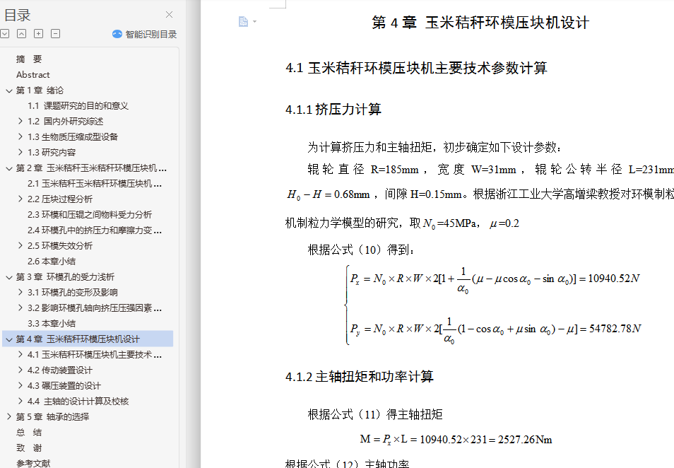 4.1玉米秸秆环模压块机主要技术参数计算 32