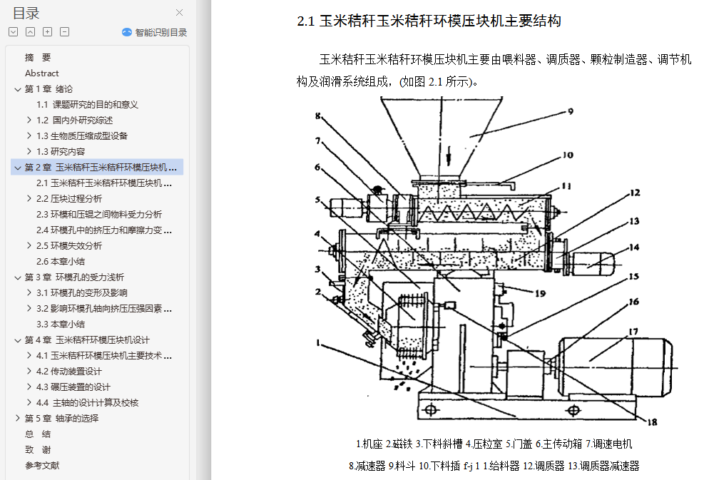 2.1玉米秸秆玉米秸秆环模压块机主要结构 14