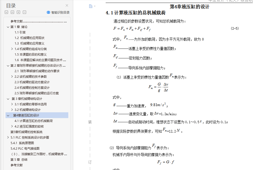 3.3手臂伸缩液压缸驱动及参数计算....................................
