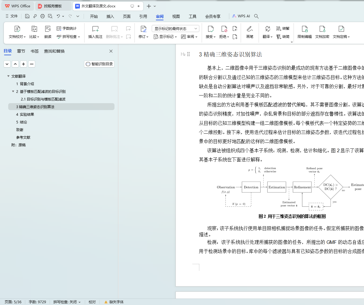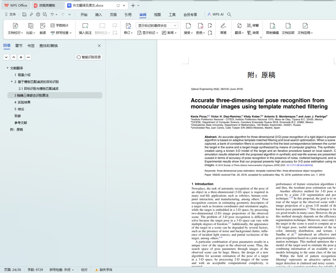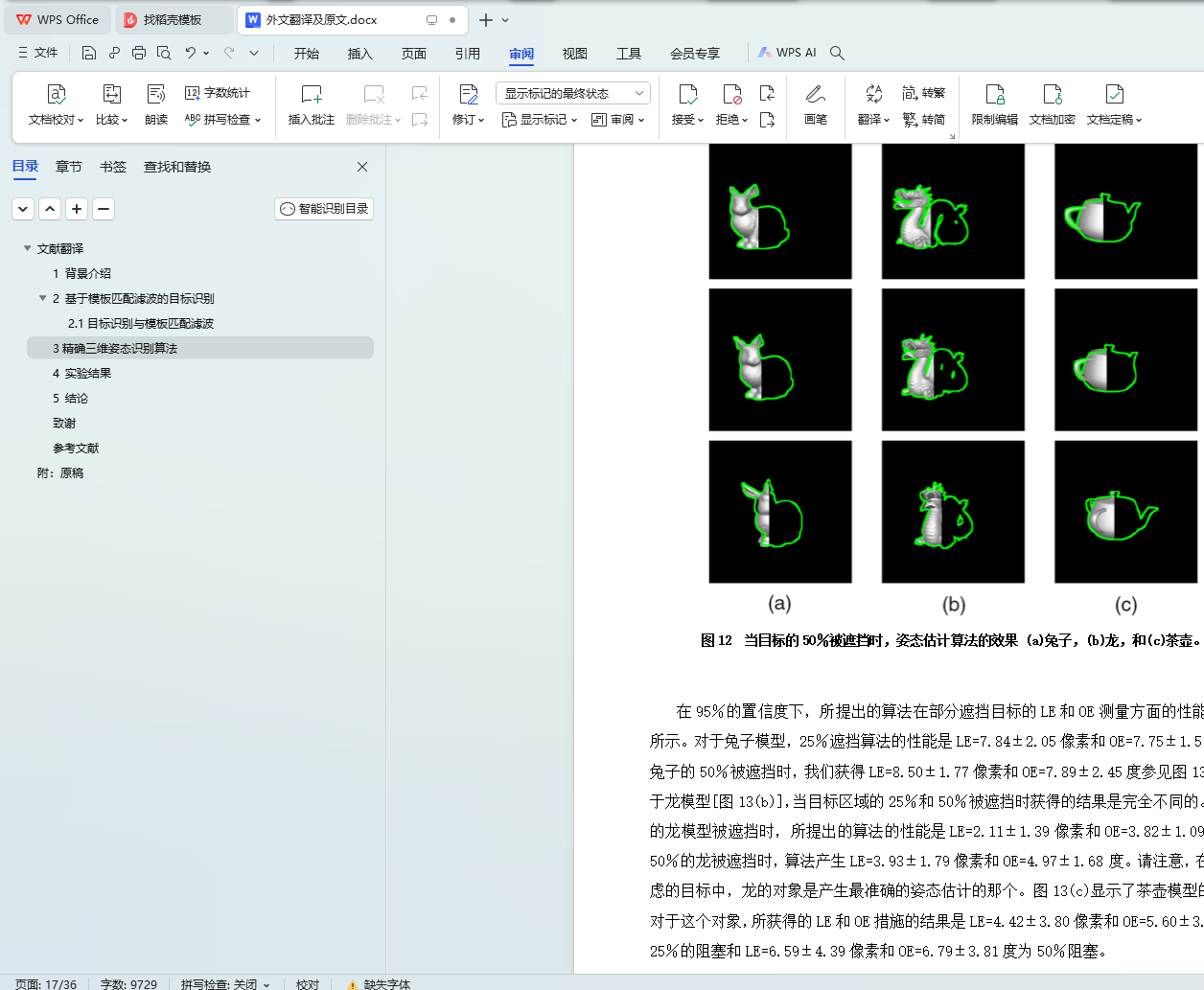 使用模板匹配滤波从单目图像精确地进行三维姿态识别
