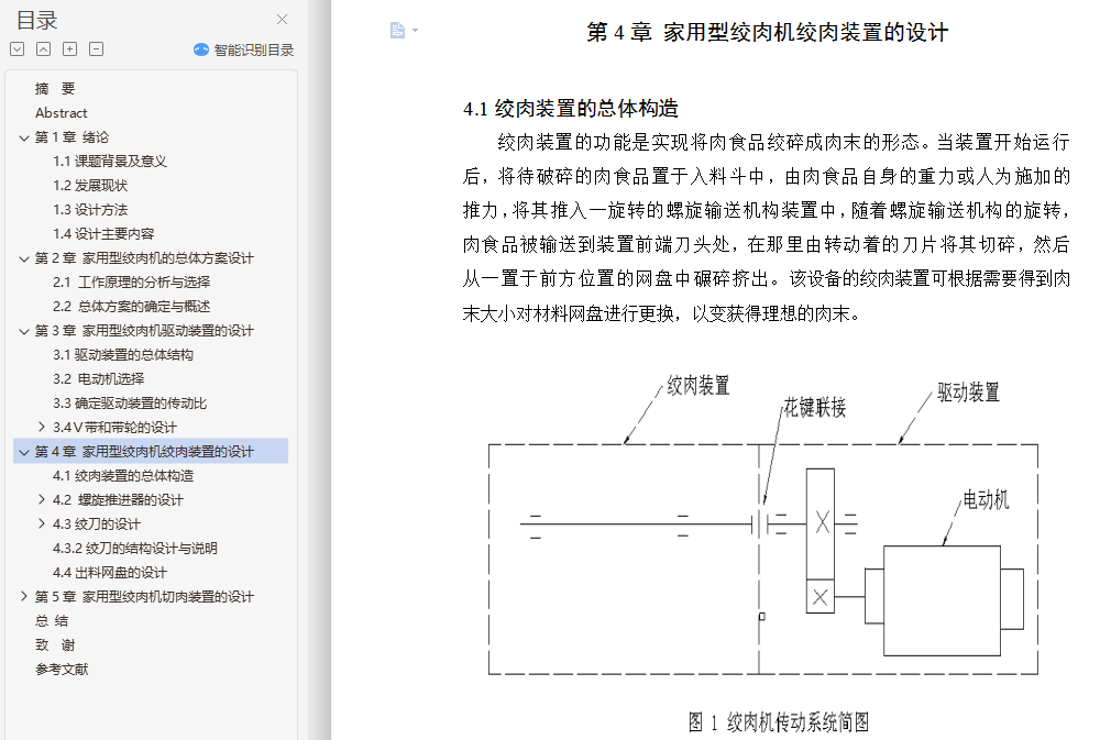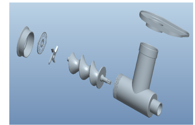 Improvements from existing domestic meat grinders. Then the focus of the initial design is how to attach the new functions on the basis of the original. In this process, the layout of the functional module is first formed. Draw the sketch of the key mechanism and the connection part, and make the accurate figure of these parts with the help of PRO/E and AutoCAD software, analyze the rationality of the layout again on the accurate graph, form an initial product. After being examined and advised by the mentor, the defects and unreasonable areas will be improved. In this process, drawing and simulation software such as AutoCAD are used. Under the guidance of the mentor and considering the beauty of appearance Analyze and design key mechanisms, calculate dimensions, analyze stresses, check materials, etc. Then the shape of the product is designed according to the distribution of the mechanism. Finally, the design results are obtained by analyzing and demonstrating again.