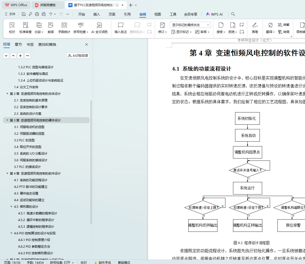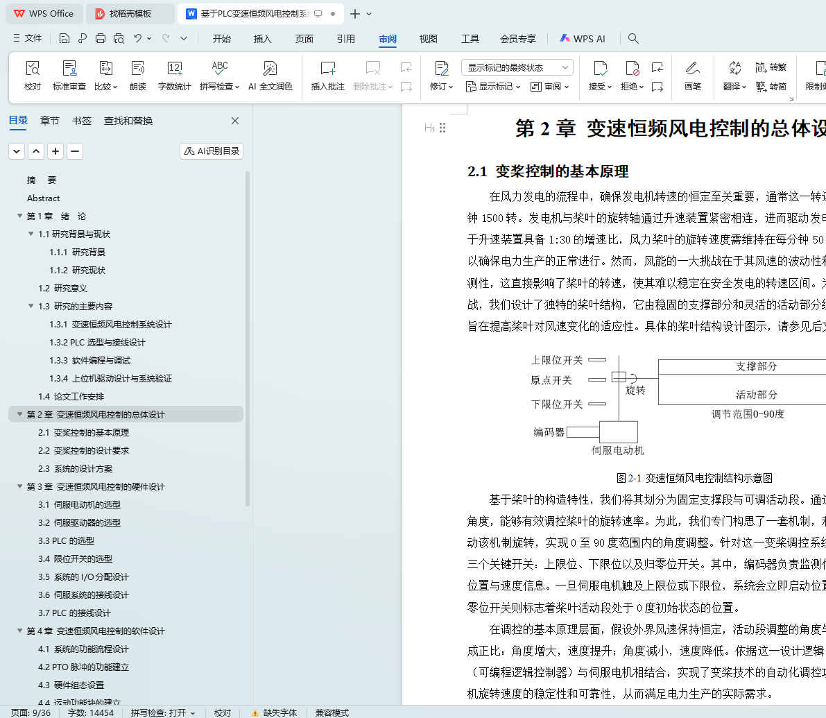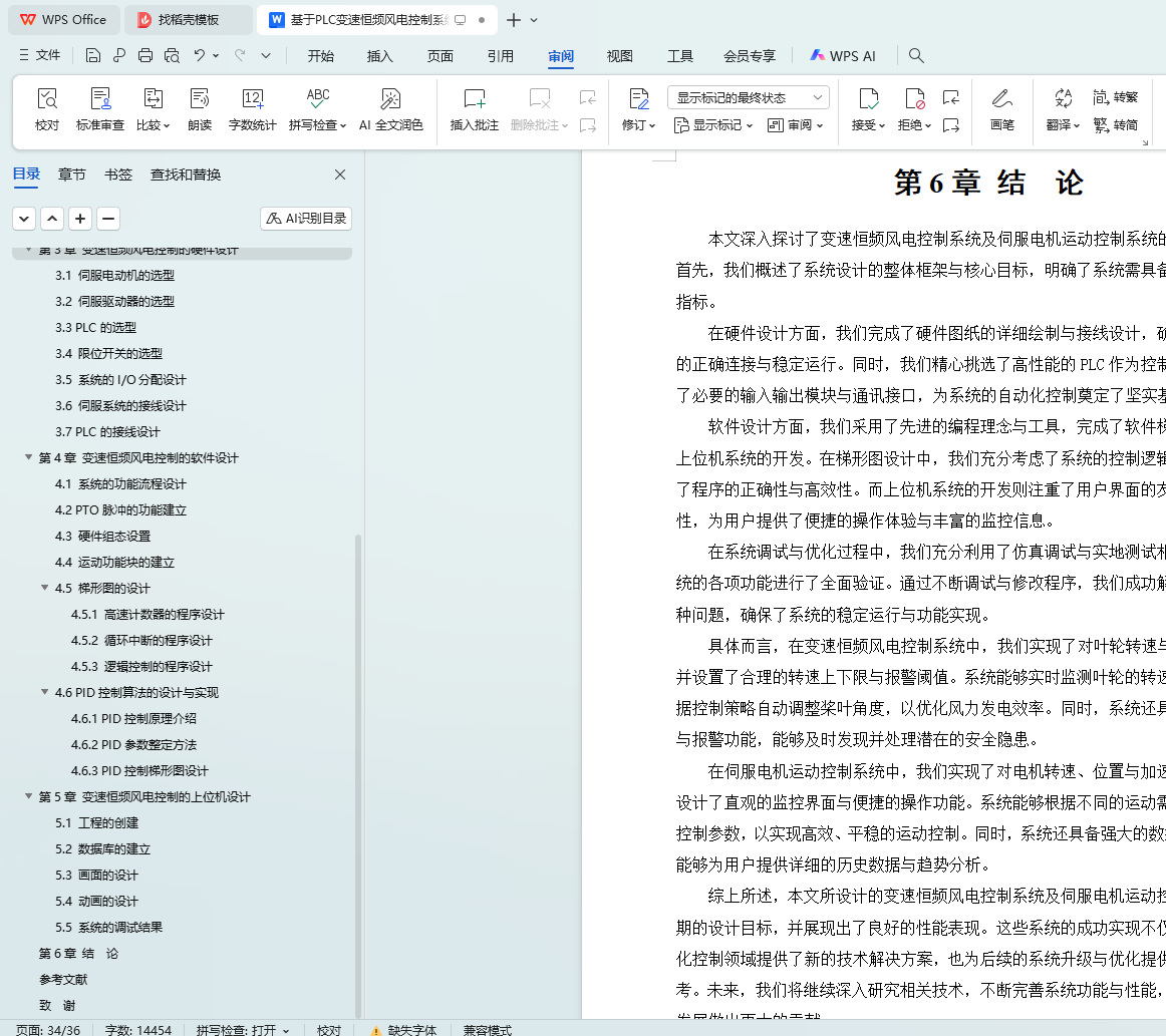 风力发电系统作为可再生能源的重要组成部分,其核心在于利用风能驱动风叶旋转,进而带动发电机进行发电。然而,由于自然风的风向和风速具有不稳定性,这导致发电机的转速也随之波动,影响了发电的稳定性和效率。为了解决这一问题,本研究设计了一种基于可编程逻辑控制器(PLC)的变速恒频风电控制系统,并引入了PID控制算法,通过对发电机转速的精确控制,实现了风能的稳定转换和高效发电。