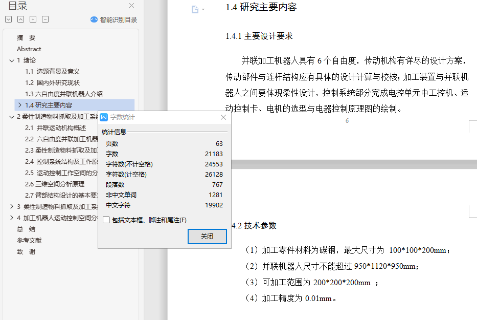 本次设计对柔性制造加工环节总体设计方案、并联加工机器人的机械与控制系统设计、系统中传动系统和驱动设备的选型以及计算;并联加工机器人具有6个自由度,传动机构有详尽的设计方案,传动部件与连杆结构应有具体的设计计算与校核;加工装置与并联机器人之间要体现柔性设计,控制系统部分完成电控单元中工控机、运动控制卡、电机的选型与电器控制原理图的绘制。