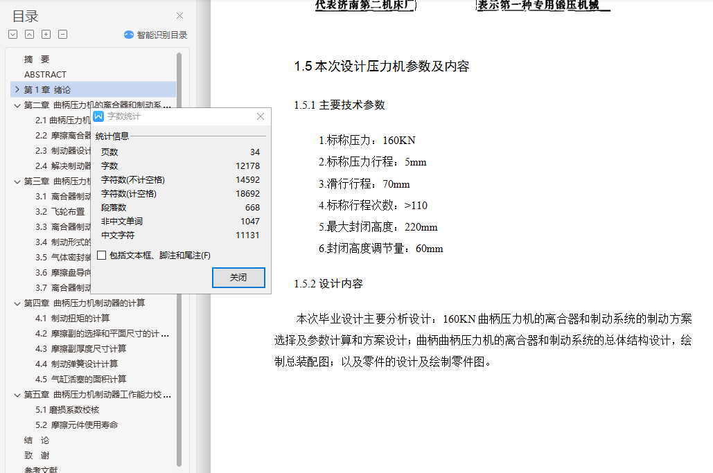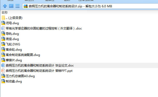 本次毕业设计主要分析设计:160KN曲柄压力机的离合器和制动系统的制动方案选择及参数计算和方案设计;曲柄曲柄压力机的离合器和制动系统的总体结构设计,绘制总装配图;以及零件的设计及绘制零件图。