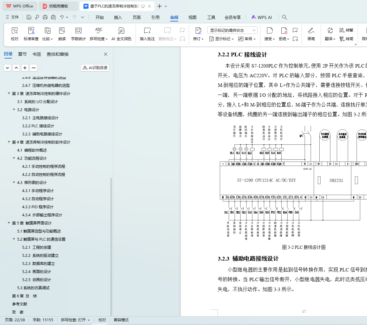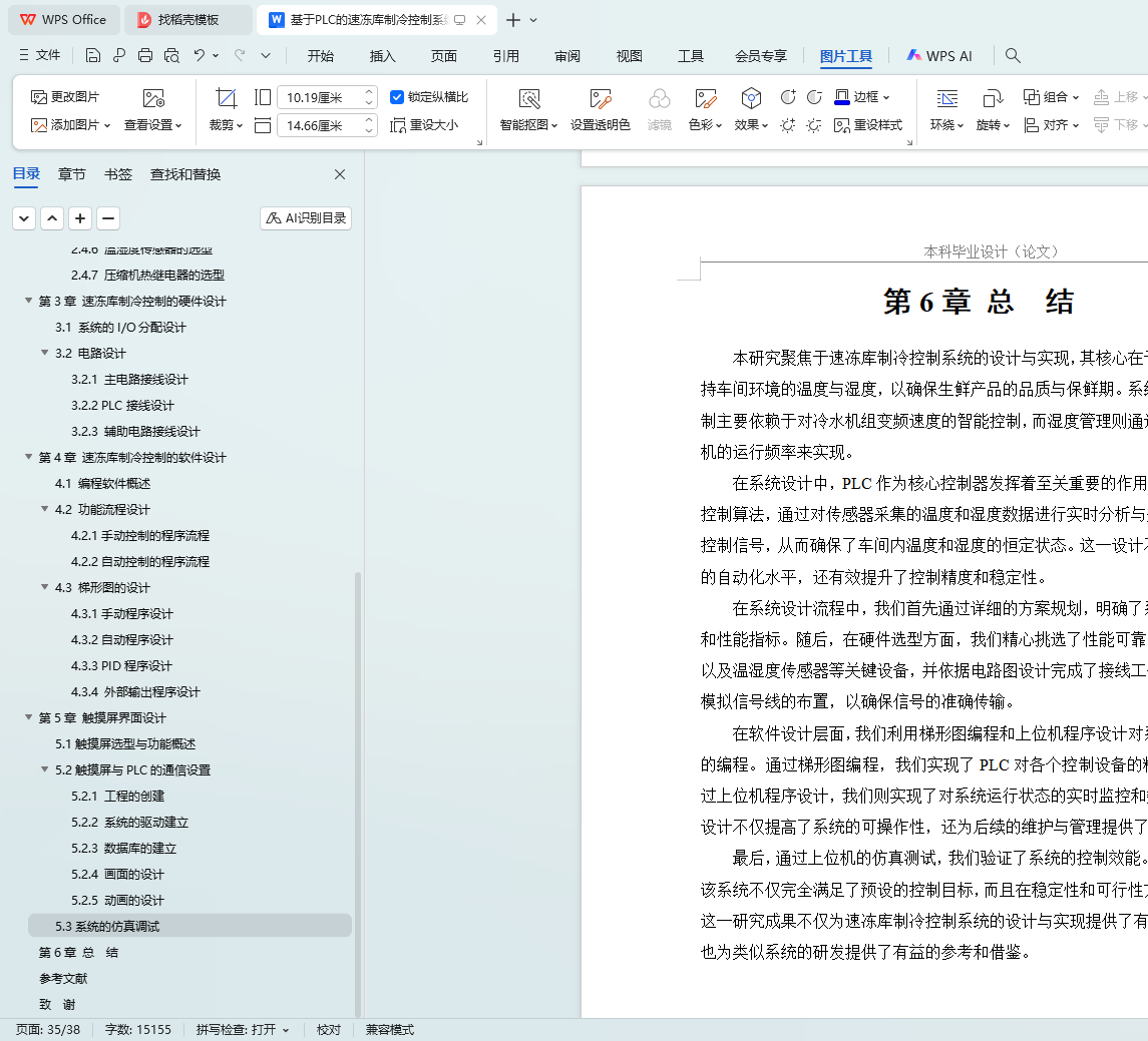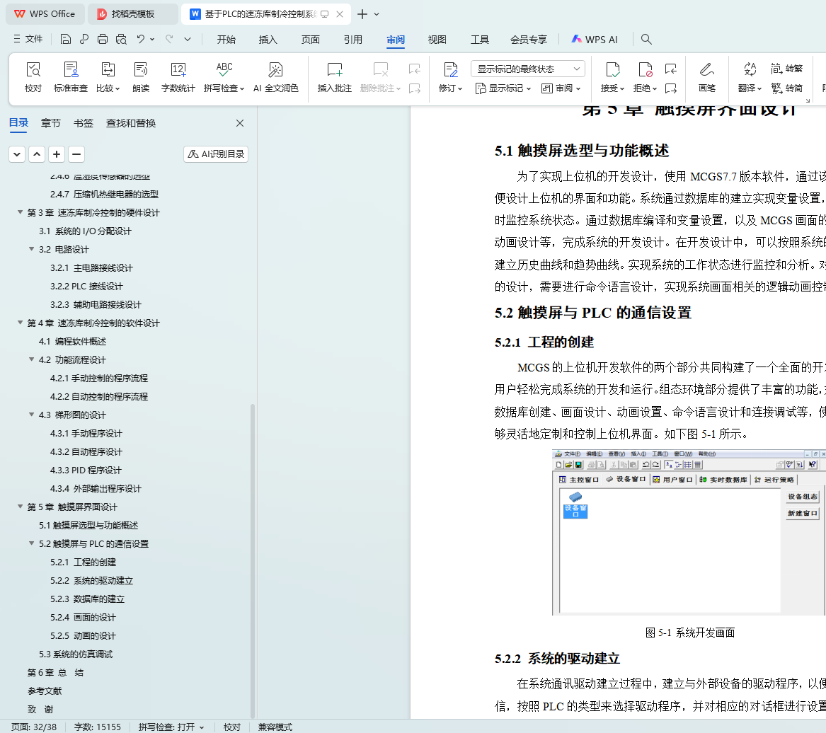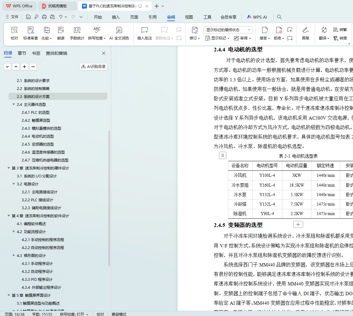 系统采用S7-1200 PLC为核心,结合MM440变频器调节除湿机、冷水泵组等设备,利用接触器控制冷水泵、冷却塔和冷风机。系统实时采集温湿度数据,通过PID算法自动调节控制。硬件方面,合理选型PLC、电动机、变频器及温湿度传感器,选用国产威纶通MT8106IQ触摸屏作为人机界面,详细设计系统电路接线。软件方面,设计手动和自动控制程序流程,完成梯形图设计。同时,设计上位机HMI监控系统,实现远程监控和故障报警功能。