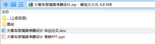 本次设计一款可以在大客车安全擦洗玻璃的清洗器,要求在擦洗过程中动作顺畅,机构灵活。可以说实现大客车安全工作,装置简单、轻便。外形美观,方便拆卸。可实现厚度为5mm-32mm的大客车玻璃的擦洗。首先对大客车玻璃擦净器总体方案进行介绍,在此基础上,对大客车玻璃擦净器总体结构进行设计分析。其次重点介绍大客车玻璃擦净器的驱动机构,讨论大客车玻璃擦净器的作业路径及运动控制规划。最后,简单介绍大客车玻璃擦净器的擦洗机构。