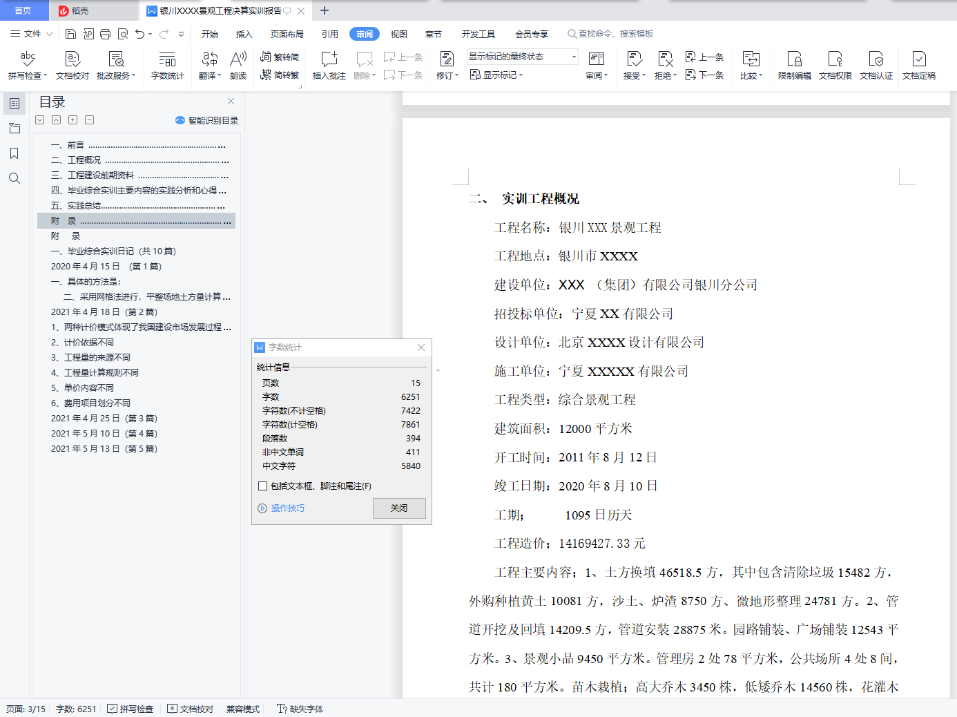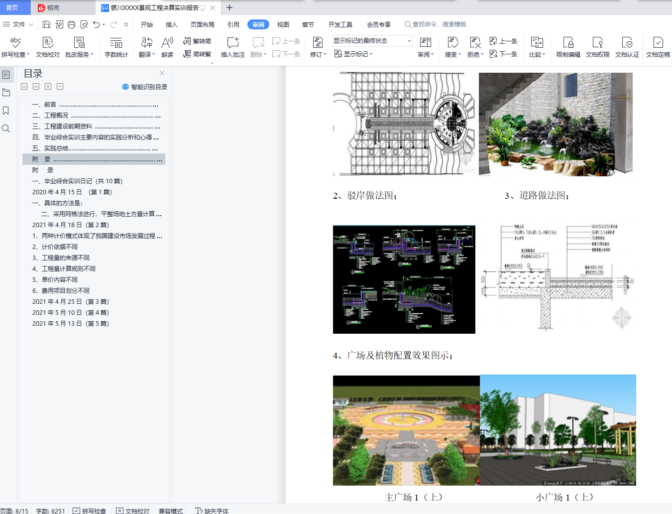 银川XXXX景观工程决算实训报告