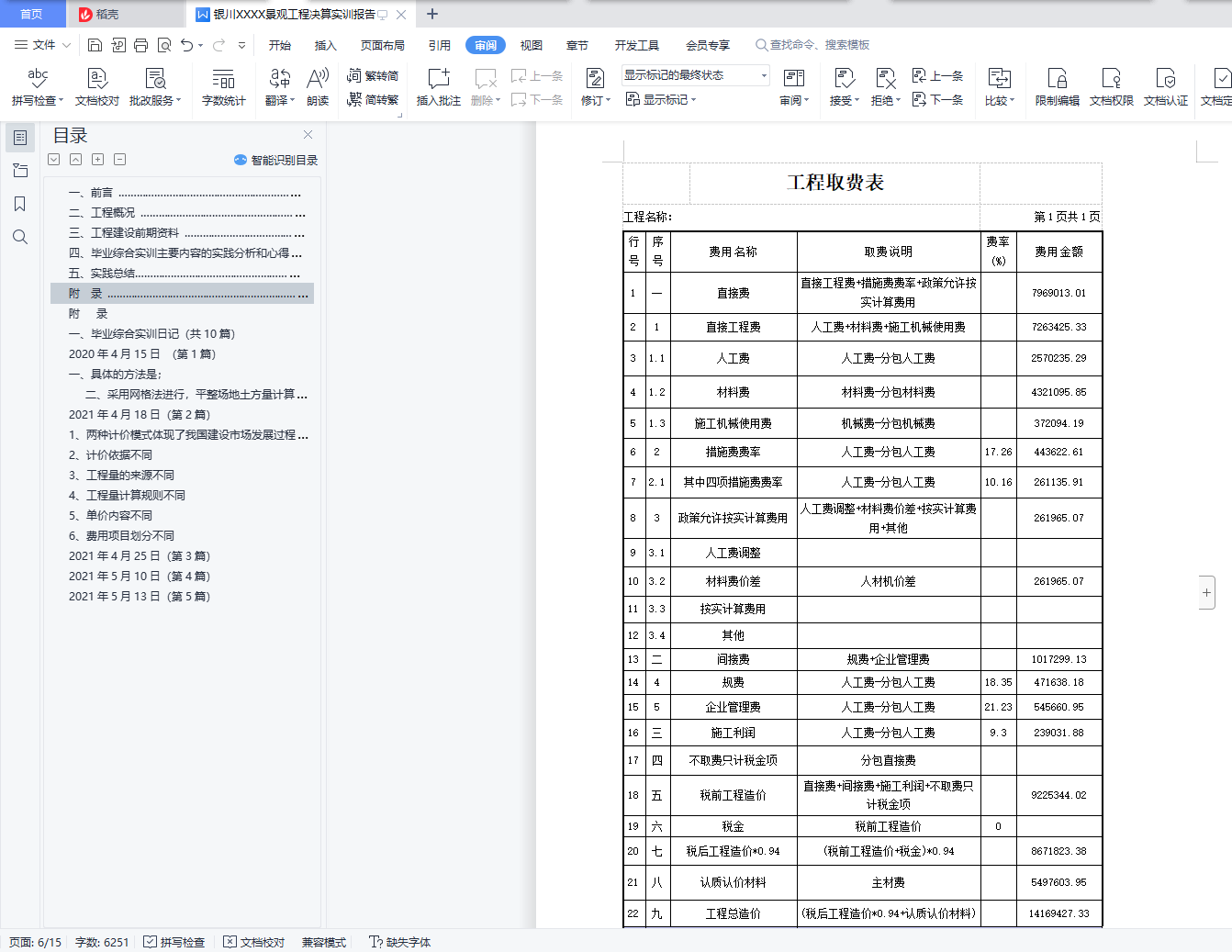 内容提要:为了银川XXX景观工程、,编写了本决算报告。报告从本工程的概况,决算编制的依据资料,编制采用方式方法,分部分项工程的编制细则等内容进行了描述。该实训报告也充分的体现了通过这次实训使我更加详细了解了工程决算对于一个工程的重要性,也让我工程造价工作有了更深一步的认识。它让我们在以后的编制预决算书或从事实际工程造价工作中更能游刃有余。也能够更好的把学到的理论知识与实际情况很好的链接,减少中间的磨合时间。也为更好的解决将来在实际工程中遇到的各类技术问题做了很好地积累。