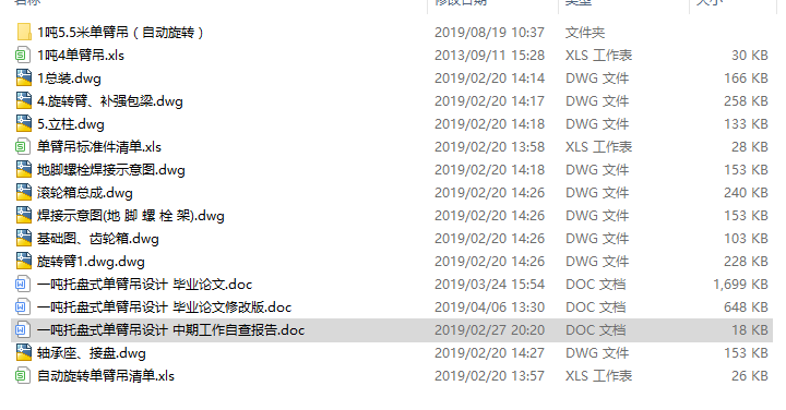 Abstract:Single-arm crane is a kind of lifting equipment which uses single column and rotary arm to lift goods. The lower end of the column is usually fixed on the concrete base, and the rotating arm can be rotated according to the customer's needs. Single-arm crane is a kind of lifting equipment which uses single column and rotary arm to lift goods. The lower end of the column is usually fixed on the concrete base, and the rotating arm can be rotated according to the customer's needs. Single arm crane is a kind of energy saving and high efficient material hoisting equipment, which is simple in structure, convenient in operation and large in working space. It is widely used in production line and assembly line of various factories and mines. In recent years, with the strength of our country, With the continuous progress, various industries have made great progress. In port transportation, the transportation machinery, which takes the tray single-arm crane as the main unit of work, is also becoming more and more important. And the design of the rotary part is paid more and more attention. The influence of the rotary part on its overall performance is self-evident. Therefore, it is necessary to discuss the design of the rotary mechanism.Taking one ton tray type single arm crane as an example, this paper describes the general process of the general design of the tray type single arm crane, and makes a preliminary design of its rotary mechanism, and gives the rotary mechanism and its overall CAD drawing, which is proved by the conclusion. The parameters of the single arm tray crane can be checked by the stability of the whole machine, and the motor and bearing selected by the rotary mechanism meet the requirements. This article draws lessons from the previous experience of scholars, but also can provide some reference for later learning.