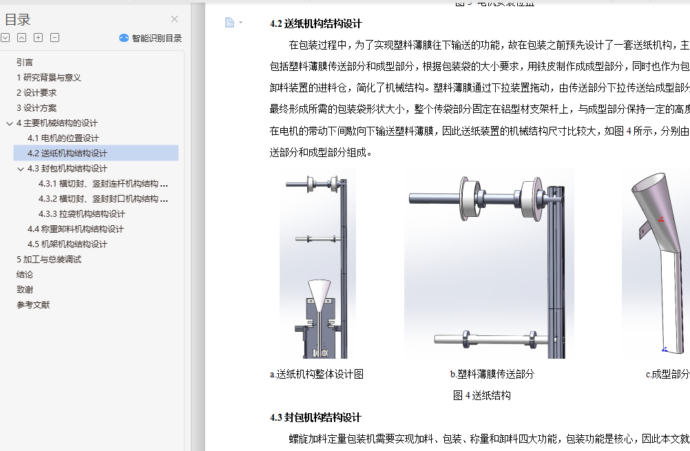 关键词:粉粒状农产品包装 送纸机构 封包机构 Solidworks