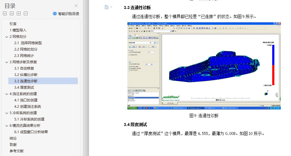 摘要 :针对塑料盖类模具设计过程复杂、其生产周期长,往往很难保证其质量。在制作塑料盖类模具之前,可先用ug软件和moldflow软件模拟得出几组数据进行对比,选择一组数据进行生产。先用ug软件创建塑料盖类的实体模型及其型腔的有限模型。通过moldflow软件对模具进行前处理和后处理两个部分,前处理主要包括建立网格模型和设定分析参数,后处理主要是模拟分析结果。通过对注射过程的模流仿真分析,发现注塑时间等因素影响生产周期长短,通过moldflow软件的分析计算之后的数值,通过比较,在以后的实际生产过程中可以通过缩短注塑时间、减少冷却时间,从而缩短模具生产周期,并且提高产品效率和质量。