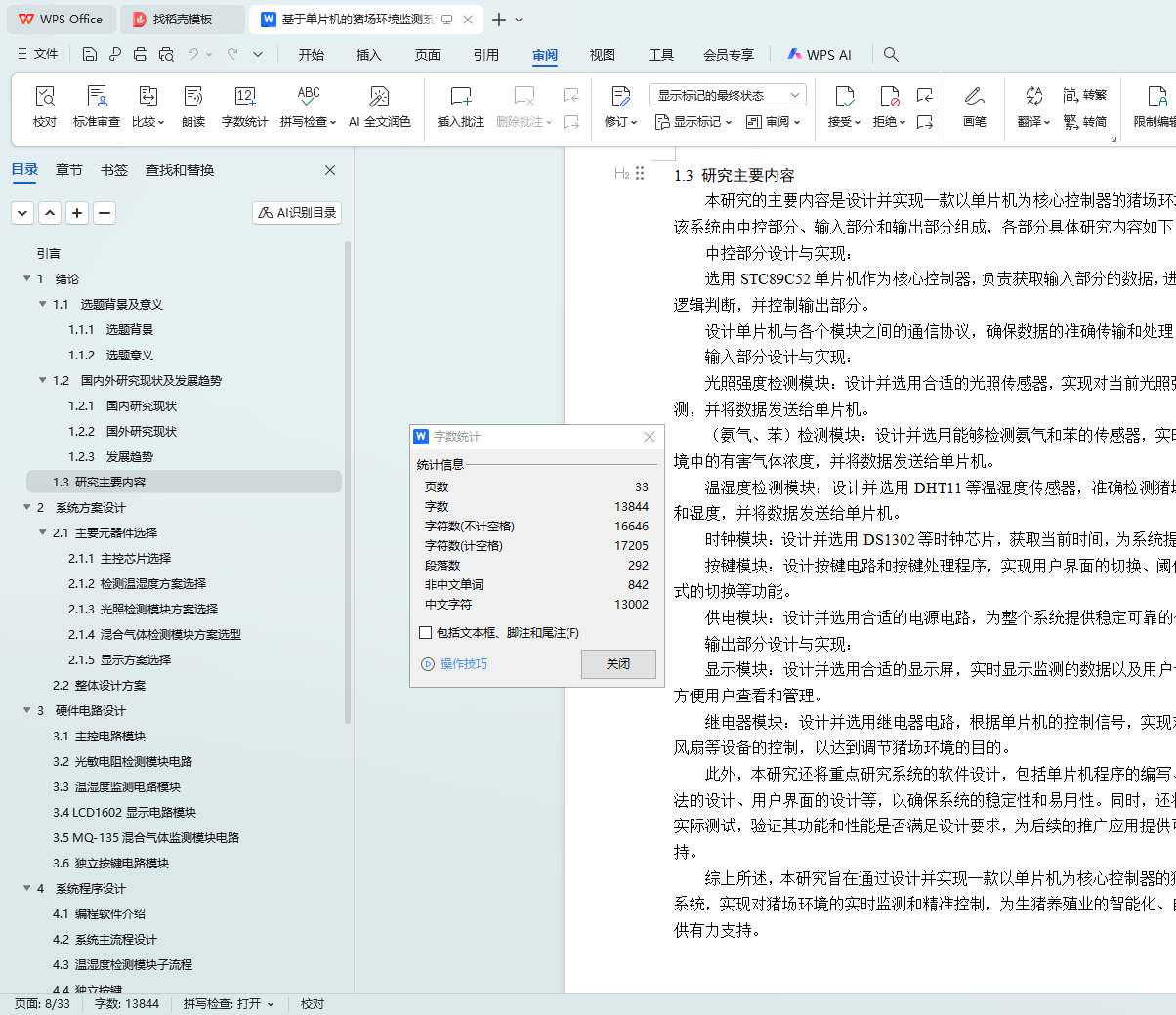 本文旨在设计并实现一款基于单片机的猪场环境监测系统,以精准、稳定地监测猪场内的环境参数,包括温湿度、二氧化碳浓度等关键指标。