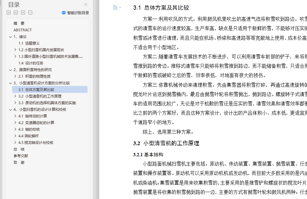 关键词:扫雪机;结构设计;离心力扬雪;传动轴