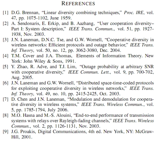 本文验证了独立但不同分布的再生中继的性能。推导出了不同的衰落信道再生中继的数学模型的中断率和误码率的闭合表达式。模拟结果进行观察到在与推导的表达式吻合得很好。这些结果最大的好处就是,它们帮助进行有效的评估系统的性能,通过模拟节省的时间和精力。此外,闭合解表达式深入的洞察系统性能,例如,大型信噪比或小信噪比条件下的上述行为。