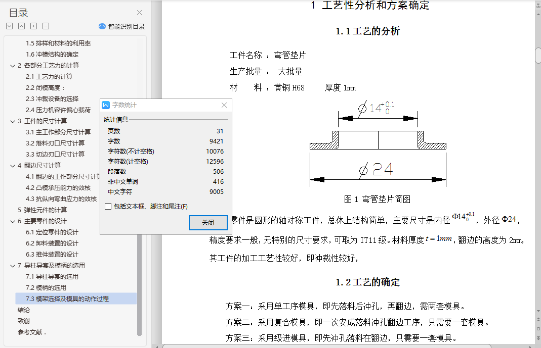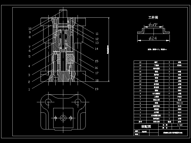 我设计的弯管垫片模具,材料为黄铜H68,厚度t=1mm。传统的加工方法为落料、冲孔、翻边、修整。我的加工方法比较特别。由于材料和厚度的原因,我采用的加工方法为:落料、省去预制孔直接翻边、再利用翻边凸模与翻边凹模的间隙进行挤切修边。从而完成工件的加工。