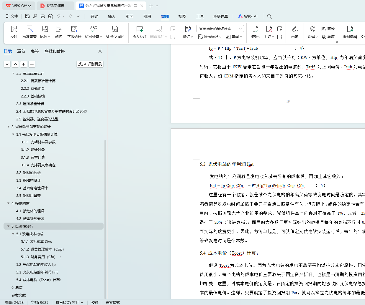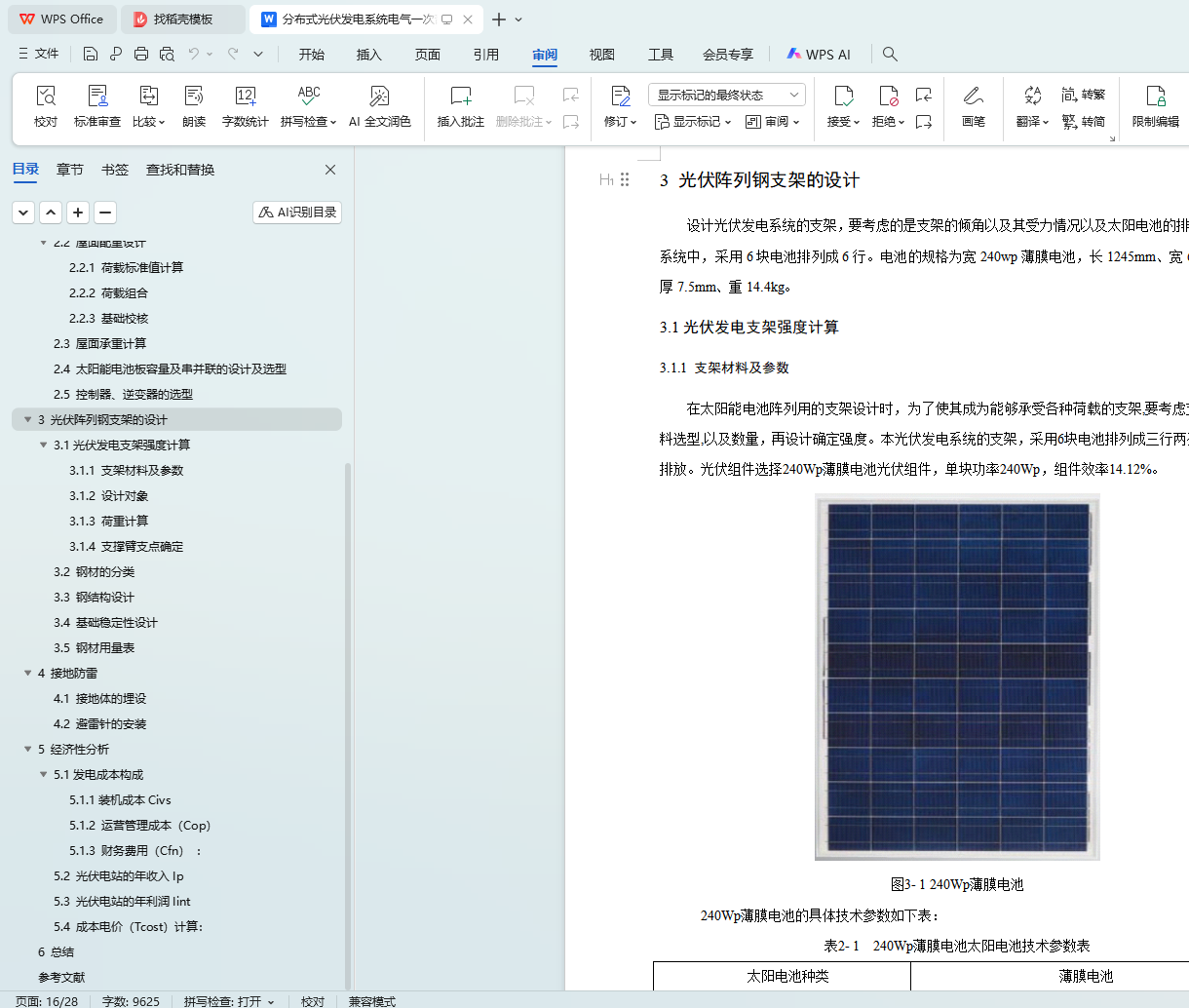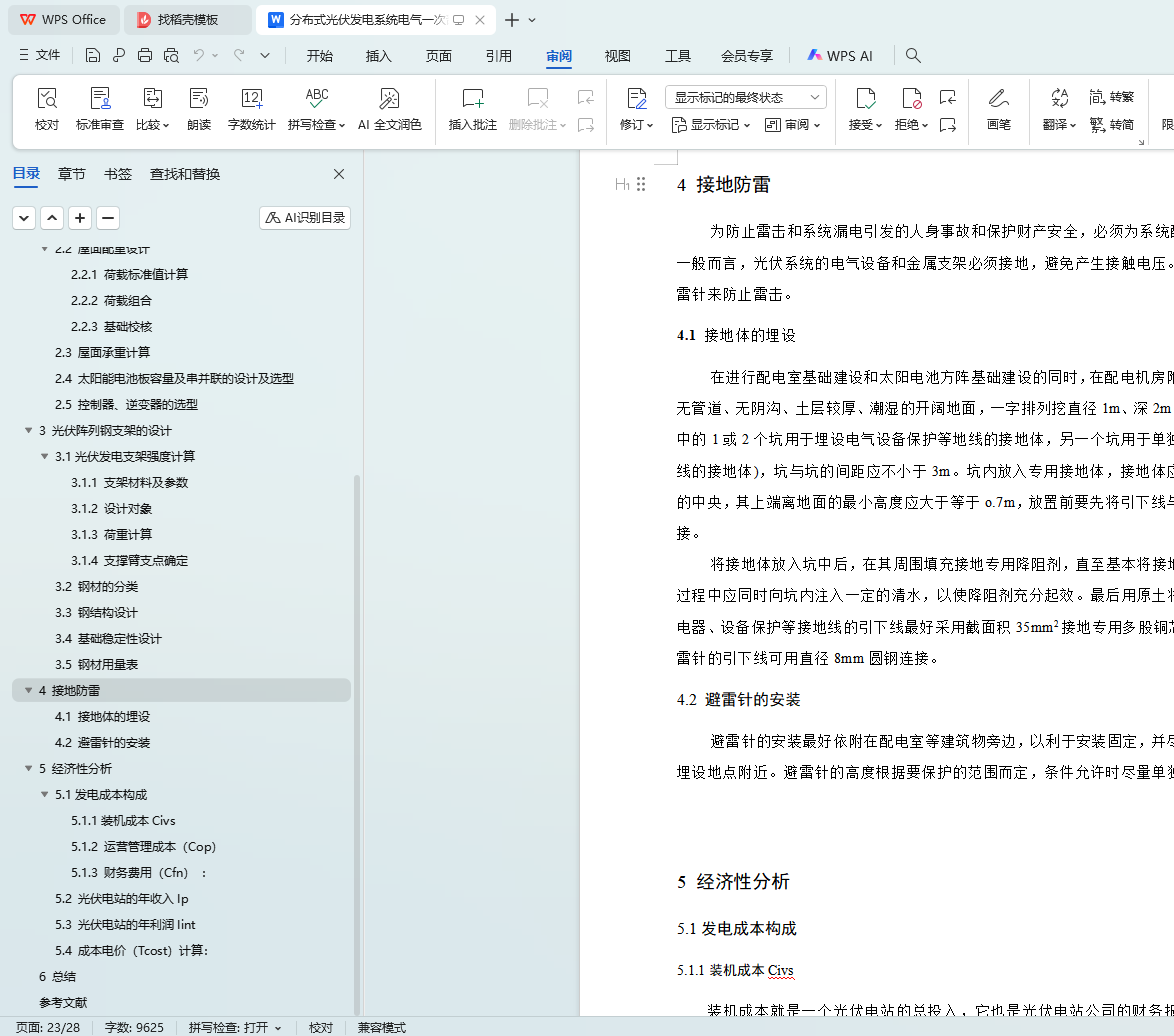 此外,本论文还关注了系统的接地防雷设计,通过合理的接地体埋设与避雷针安装,提高了系统的安全防护能力。在经济性分析部分,详细分析了光伏发电系统的成本构成,包括装机成本、运营管理成本及财务费用,并基于发电量预测,计算了系统的年收入、年利润及成本电价,预测了农户在未来20~25年内可能实现的年均卖电收入,约为3000元,为农户脱贫提供了可行的经济路径。
