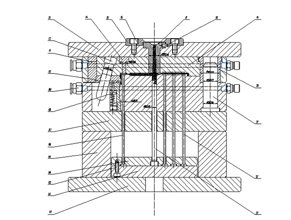 (1) the plastic parts are of small size and of the same normal precision grade. Plastic mould of medium difficulty. It includes the basic structure of the mould, including one outside core pulling, five inner core pulling (the basic size and structure of the five inner core pulling are the same).