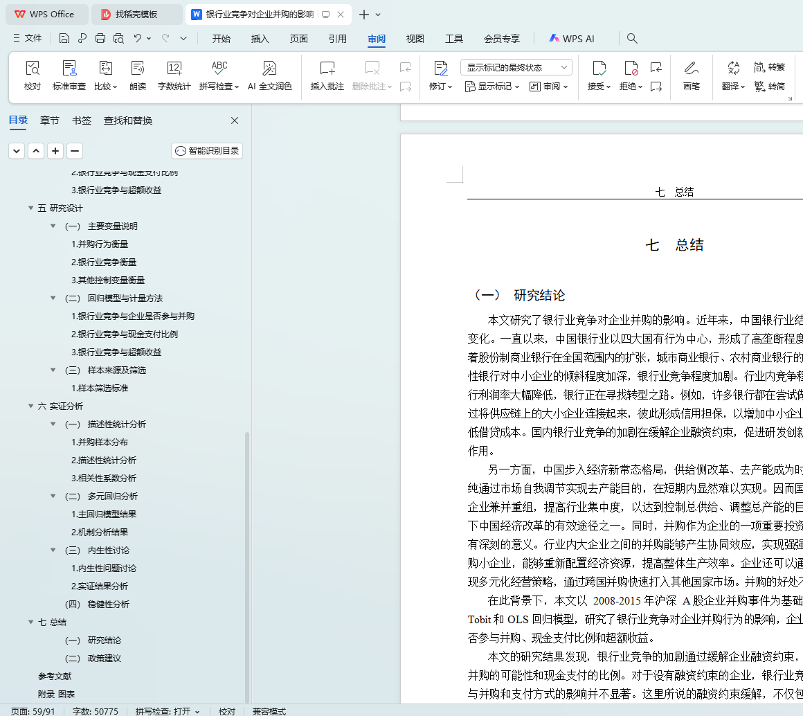 本文的主要贡献有四点。第一,本文通过理论和实证研究,首次证明了银行业竞争对企业并购的影响。第二,本文找到了融资约束和公司治理两条可能的渠道来解释研究结论,既有文献支撑,又有实证依据。第三,本文完善了已有文献。从并购角度补充了银行业竞争对企业行为影响的文献,从银行竞争角度补充了融资约束和银行监管对企业并购影响的文献。第四,本文具有深刻的现实意义,能够为企业管理者和政策制定者提供参考意见。