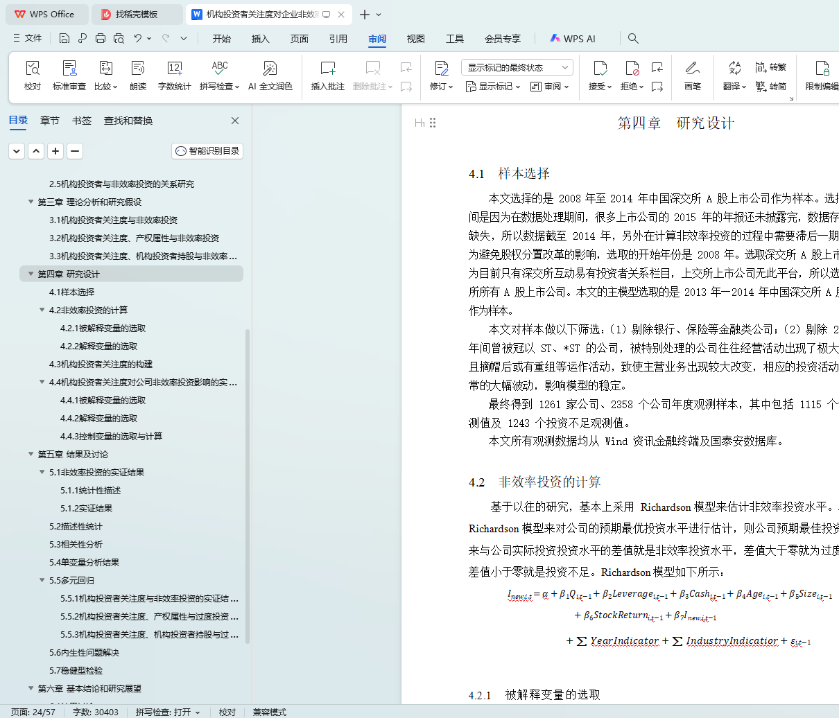 4.4机构投资者关注度对公司非效率投资影响的实证模型 19