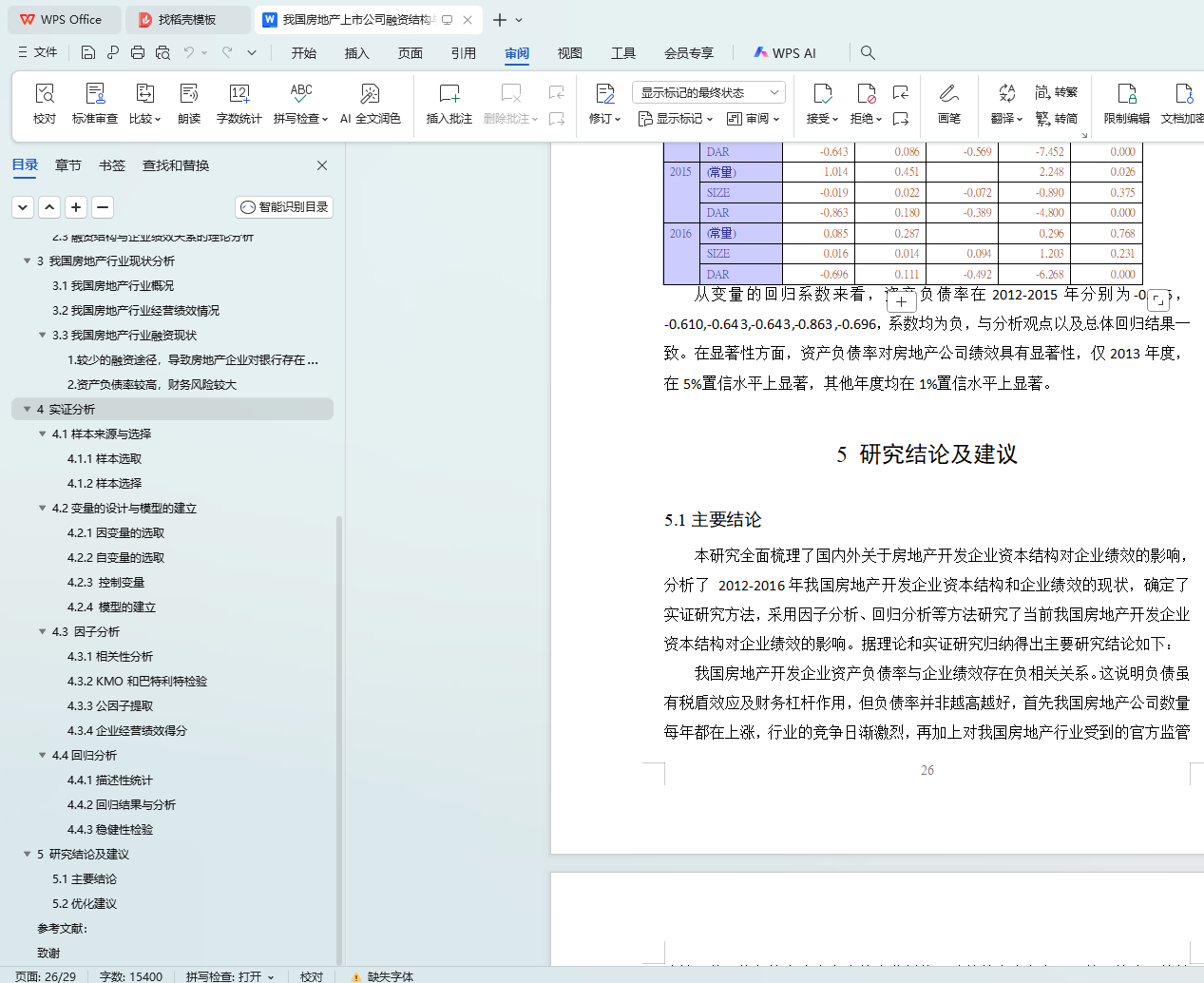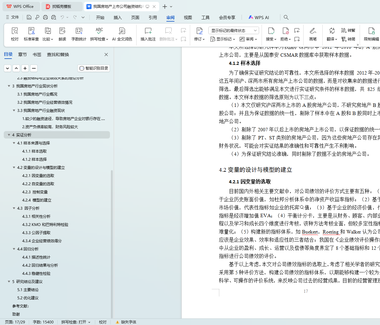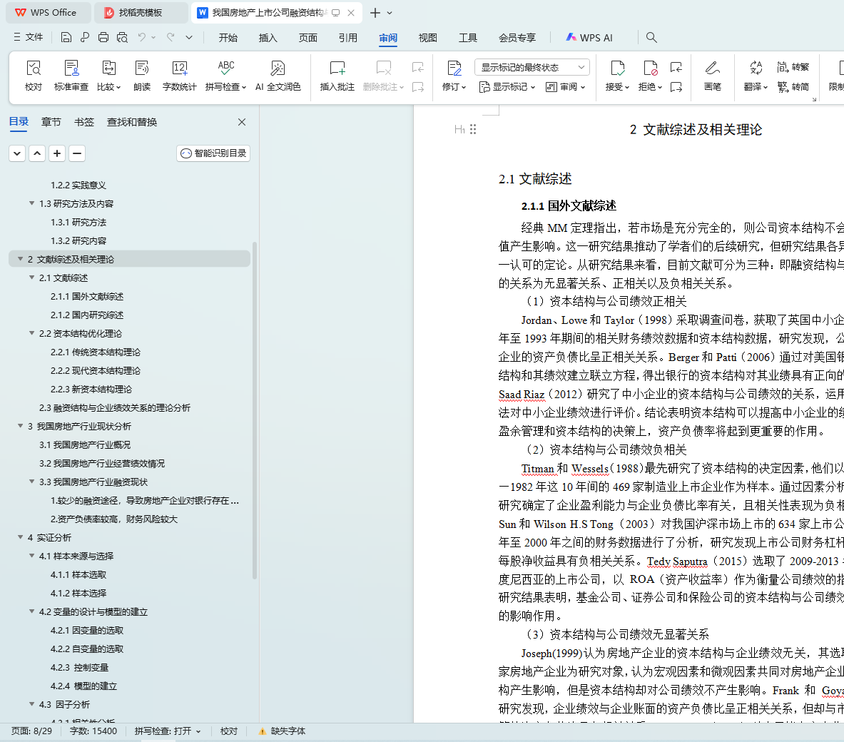 【Key words】real estate listed company, financing structure, corporate performance