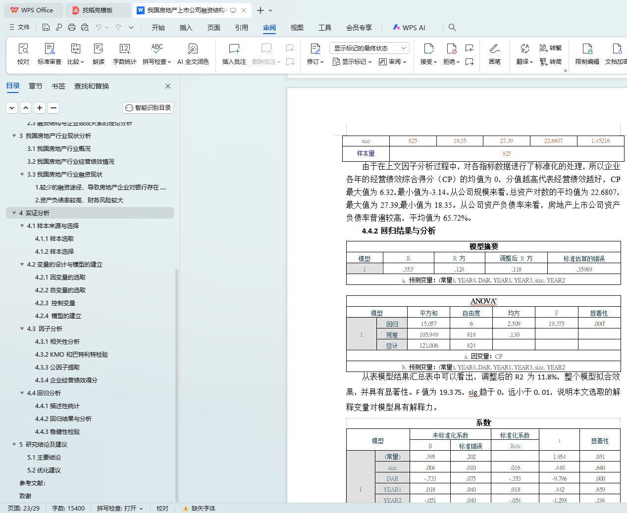 4.4.2回归结果与分析