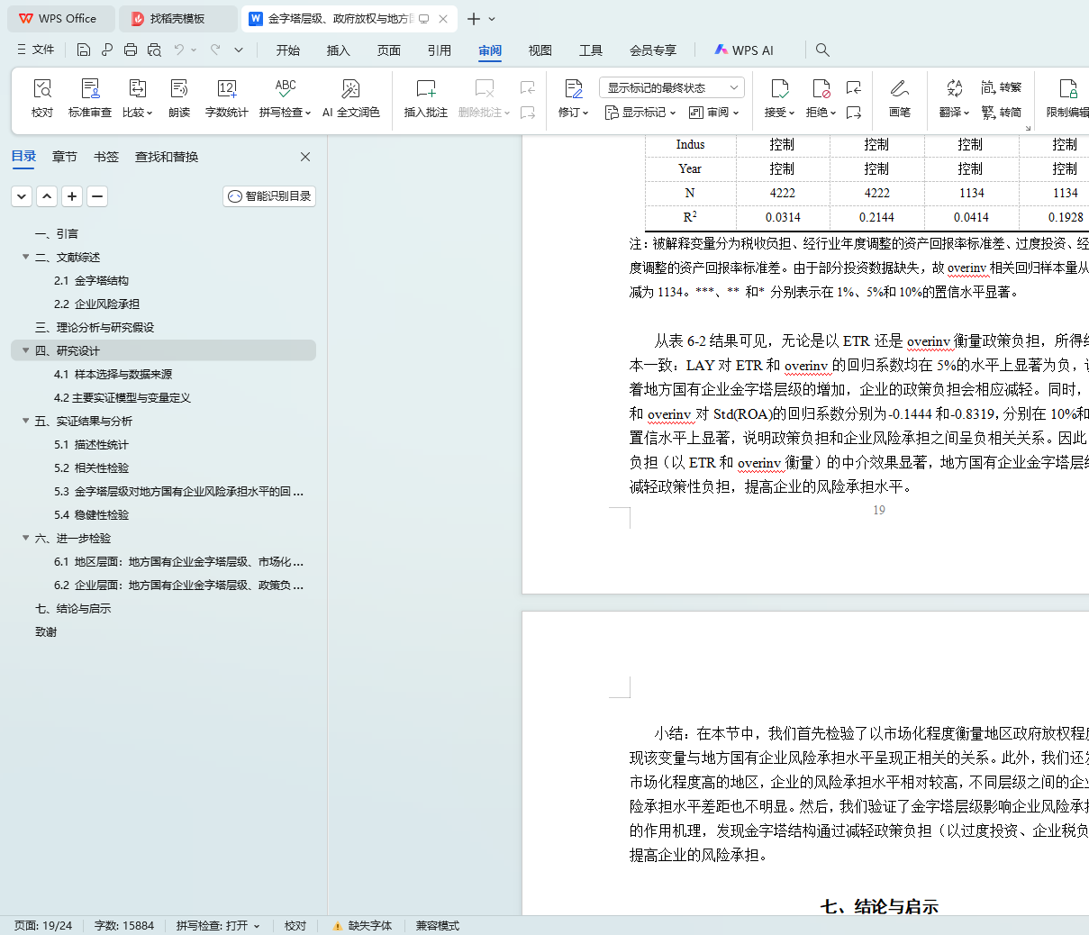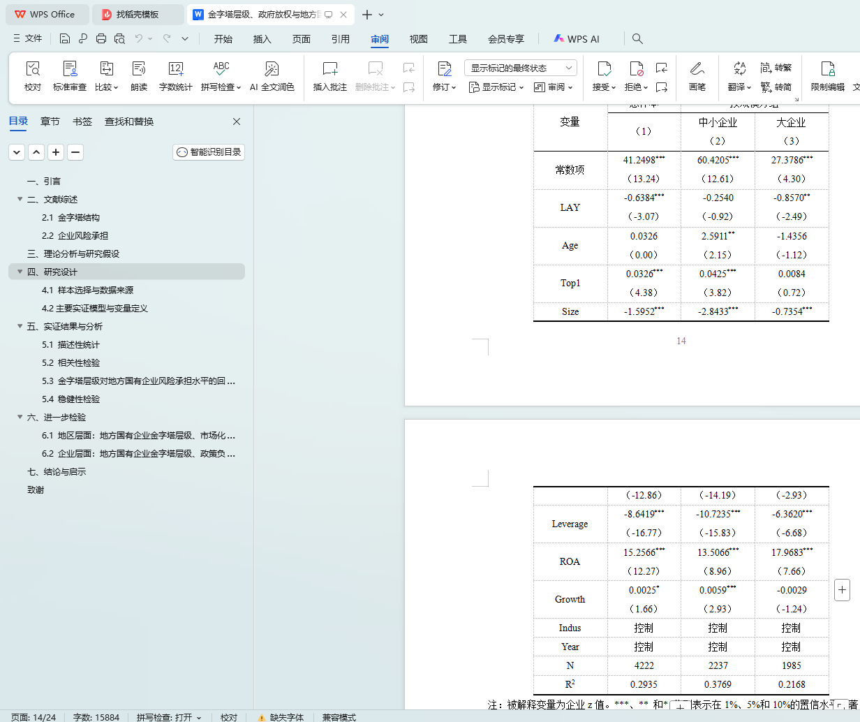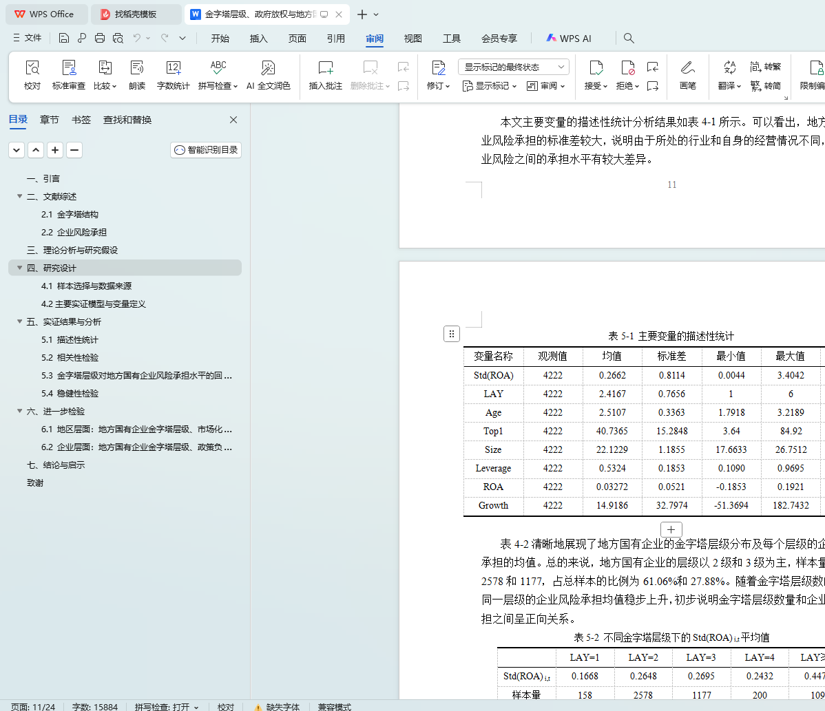 5.3 金字塔层级对地方国有企业风险承担水平的回归分析结果