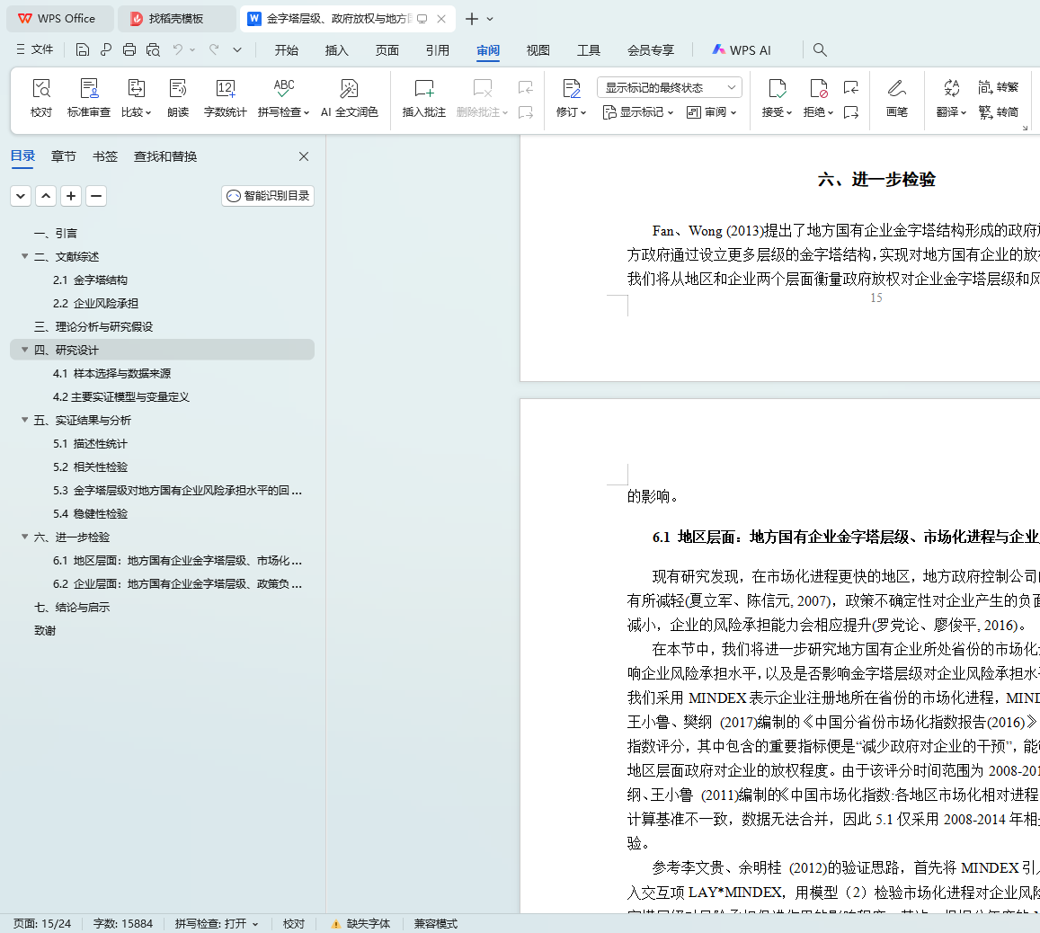 6.1 地区层面:地方国有企业金字塔层级、市场化进程与企业风险承担