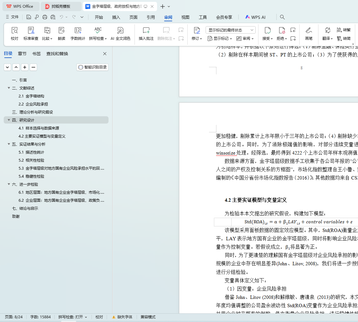 【Summary】Pyramid structure is a common corporate structure in China, especially for those State-0wned Enterprises(SOEs). It can not only reduce the degree of government intervention to an enterprise, but also reserve government’s decision-making power. This is a kind of government decentralization, which can help the enterprise improve its corporate risk-taking. In this article, we look at the questions that how the layer of corporate pyramid affects its level of risk-taking, that what its mechanism is, and that government decentralization plays what role in this process. This article takes a sample of local state-owned companies listed in the SH and SZ A-shares from 2004 to 2014. The study finds that: First, increasing the pyramid level of local SOEs can promote them to increase their risk-taking level; Second, in the regions where the degree of marketization is high, local SOEs have a relatively higher level of risk exposure, and the level of risk-taking among firms among different pyramid levels is relatively small. Third, the pyramid-level increase helps to reduce the policy burden on companies and increase government decentralization, so as to enhance the level of corporate risk exposure. The conclusions enrich the literature on local state-owned enterprises' risk-taking, help to clarify the role of the marketization process in the pyramid-level impact on corporate risk-taking and the mechanism of these phenomena.
