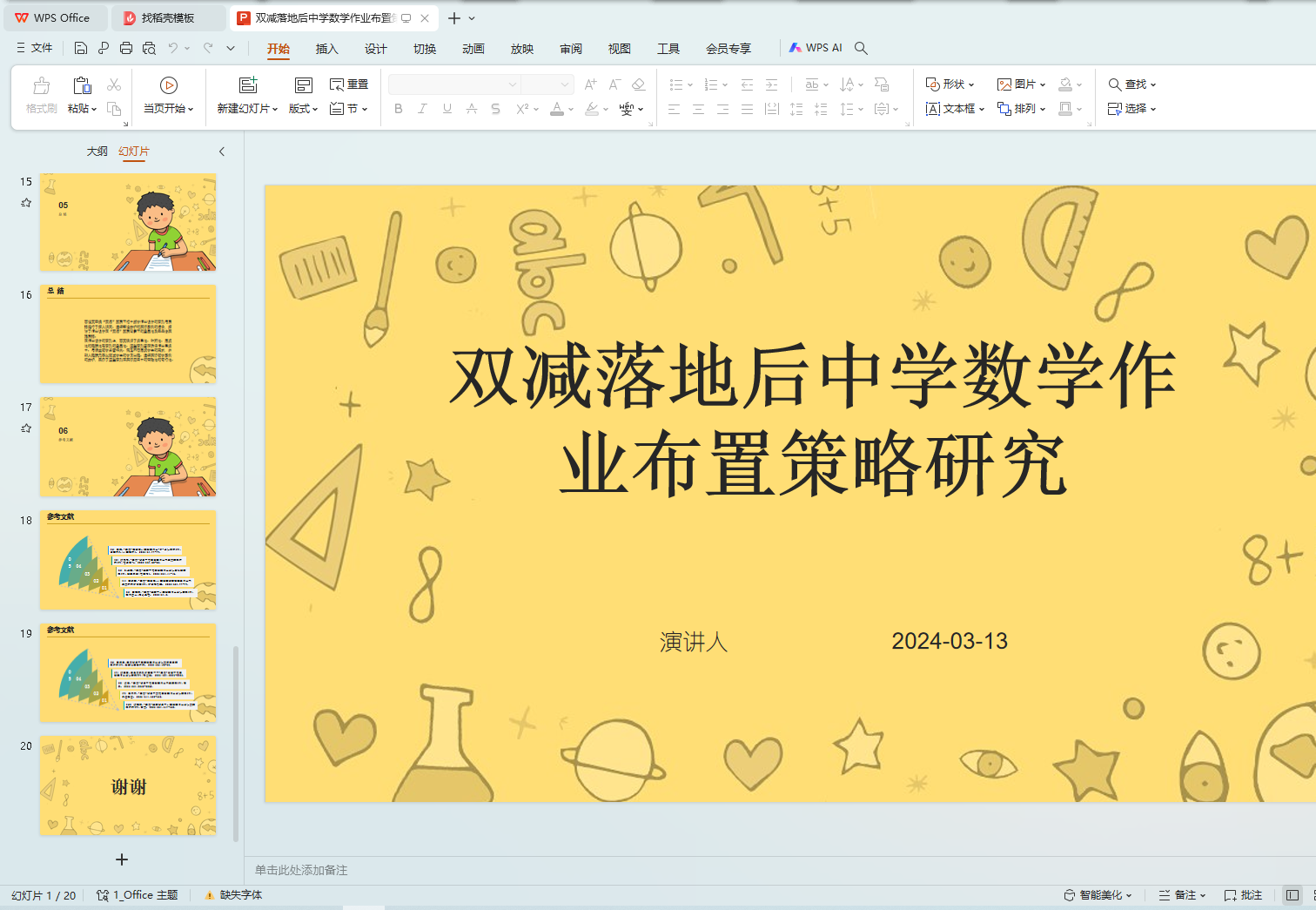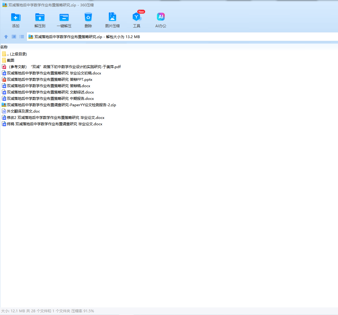 随着“双减”政策的落地实施,教育改革进入了一个新的阶段,对学生的课业负担和作业质量提出了更高的要求。在此背景下,研究初中数学作业布置策略具有重要的现实意义和理论价值。本选题旨在探讨如何在“双减”政策指导下,优化初中数学作业布置,以减轻学生负担、提高作业质量和效率。通过深入研究国内外相关文献,结合实证调查和分析,本研究旨在提出一套科学、有效的作业布置策略,为教育改革实践提供有益的参考和借鉴。因此,本选题来源于教育改革政策与实践需求,旨在推动初中数学教育质量的提升和学生全面发展的实现。