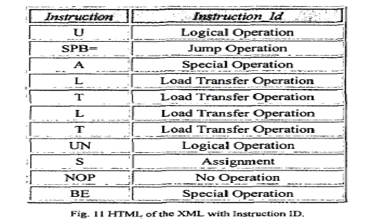 The XML after the instruction identification is transformed using the XSL, where the instruction and the instruction Id, obtained after extracting the XML according to the type of operations are visualized in a table containing two columns (Instruction, Instruction Id) in HTML.