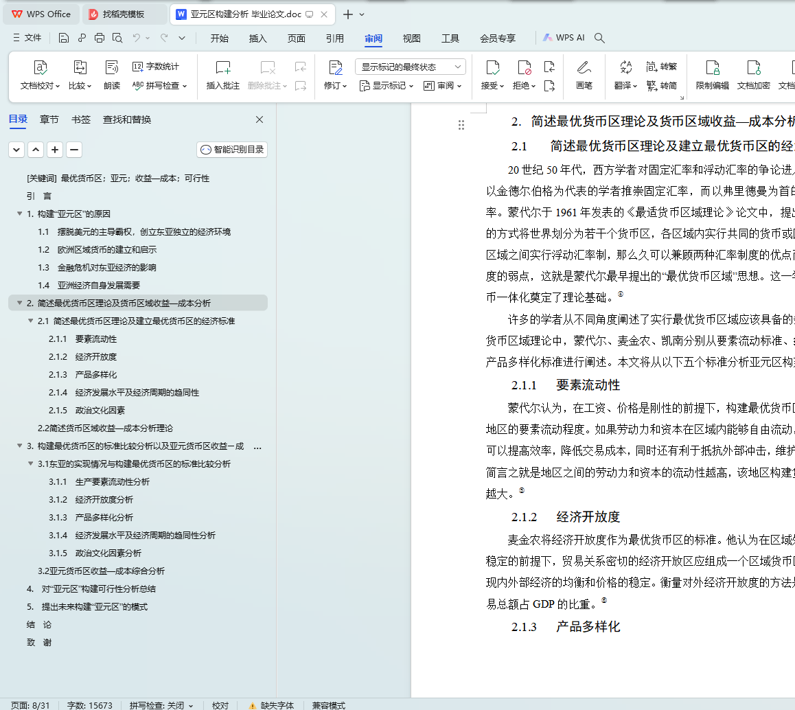 [关键词] 最优货币区;亚元;收益―成本;可行性