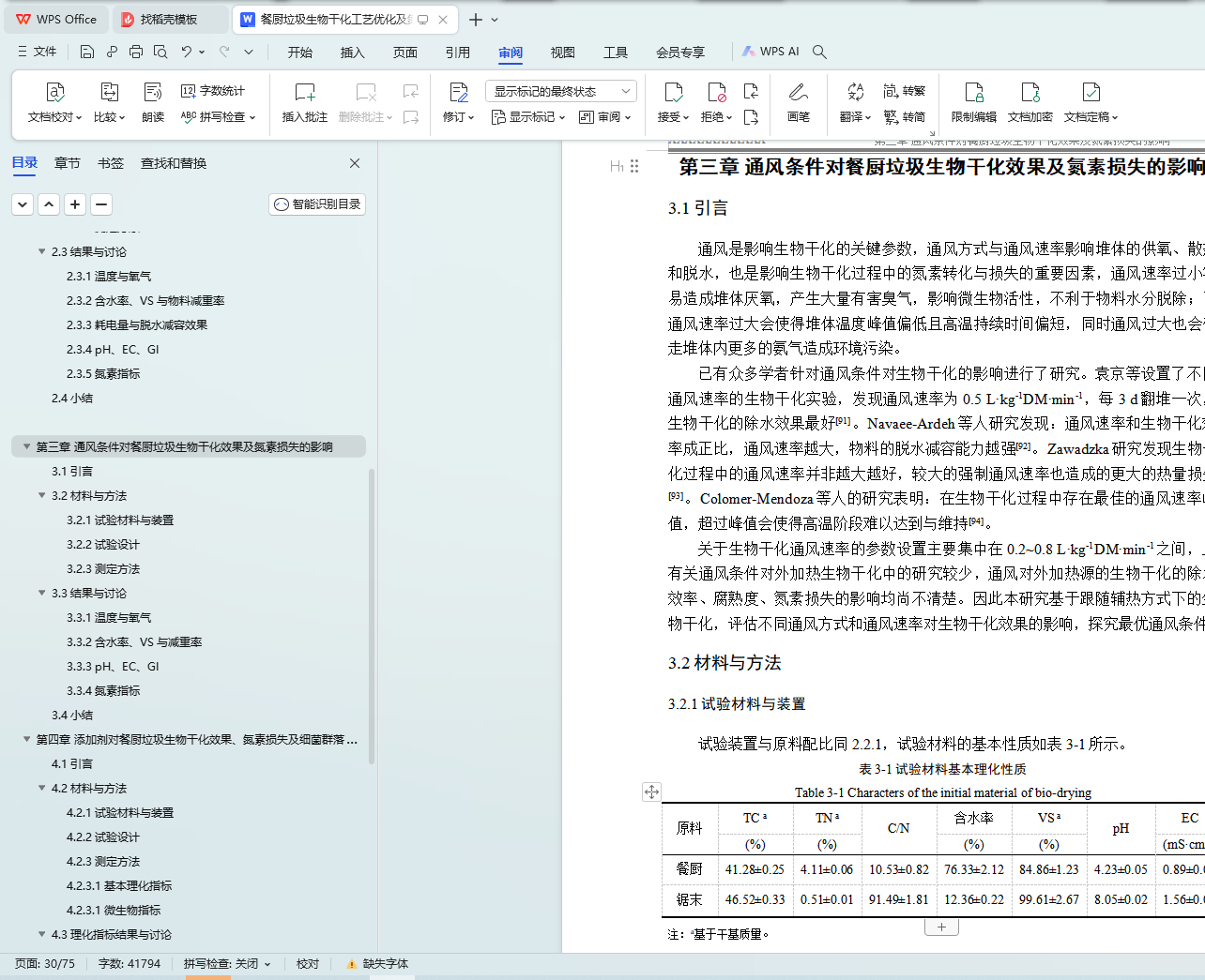 第三章 通风条件对餐厨垃圾生物干化效果及氮素损失的影响
