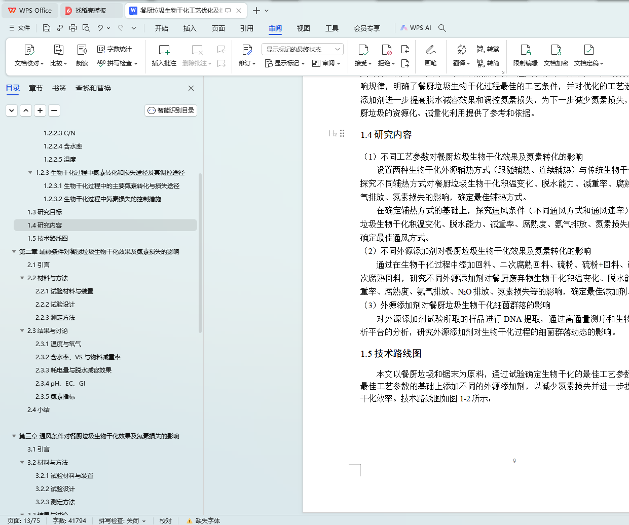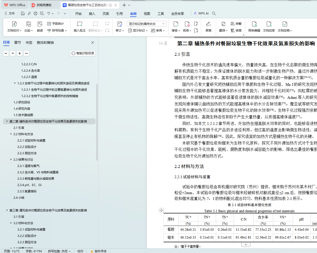 第二章 辅热条件对餐厨垃圾生物干化效果及氮素损失的影响