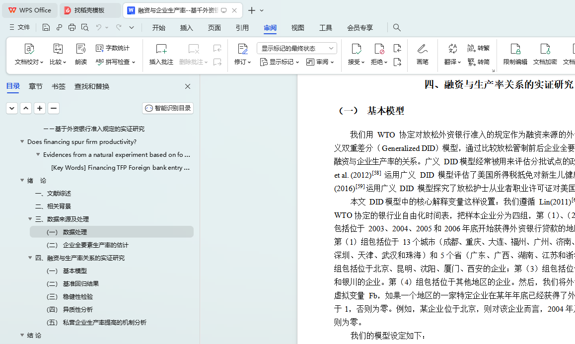 【关键词】 融资 全要素生产率 外资银行准入 双重差分模型
