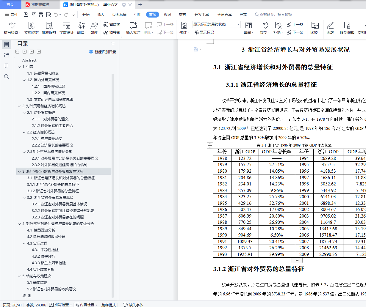 3.1 浙江省经济增长和对外贸易的总量特征