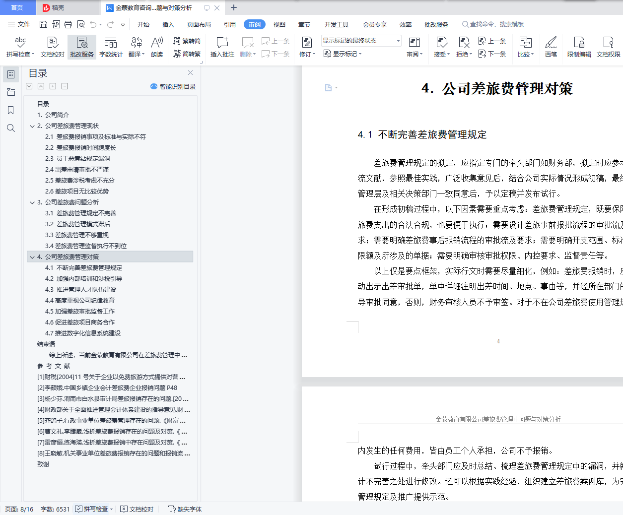 摘要差旅费,指相关人员临时到常驻办公地点以外的地区公务出差,发生的出差期间的费用支出,包括购买飞机票、火车票、汽车票、住宿费、误餐补助费及其他方面的支出。不同单位或部门的差旅费具体开支范围、限额、标准、报销程序等可能会有所不同。差旅费作为企业的一项日常经常性经营费用之一,其业务量多、数量大、易超难管。在实际报销业务中,受差旅费管理规定不完善、领导不重视、监管被忽视、审核不严谨、涉税考虑不充分等影响,给企业无形之中增加了不必要的费用开支。就厉行节约反对浪费而言,建立科学规范的差旅费报销规定具有非常重要的意义。另外,随着国家税收政策红利不断扩大,全面实行营改增后,若在差旅费管理过程中充分考虑税收筹划,也可为企业降费增效提供新的思路。本文主要对金蒙教育教育有限公司在差旅费管理过程中存在的问题进行了探讨,并提出了相应的对策。关键词:问题;管理;税收筹划目录1. 公司简介 12. 公司差旅费管理现状 12.1差旅费报销事项及标准与实际不符 12.2差旅费报销时间跨度长 12.3员工恶意钻规定漏洞 22.4出差申请审批不严谨 22.5差旅涉税考虑不充分 22.6差旅项目无比较优势 33. 公司差旅费问题分析 33.1差旅费管理规定不完善 33.2差旅费管理模式滞后 33.3差旅费管理不够重视 33.4差旅费管理监督执行不到位 44. 公司差旅费管理对策 44.1不断完善差旅费管理规定 44.2加强内部管理培训和涉税引导 54.3推进管理人才队伍建设 84.4高度重视公司纪律教育 84.5加强差旅审批监督工作 84.6促进差旅项目商务合作 74.7推进数字化信息系统建设 9结束语 10参考文献 11致谢 12
