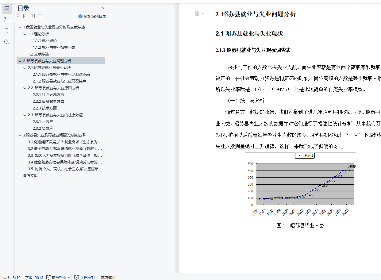 昭苏县就业与失业问题研究专业:学生: 指导教师:摘 要昭苏县失业人口激增、就业压力越来越大,对大量失业问题做出合理科学的解释,是解决就业问题的关键。随着市场经济体制的导入,原来靠牺牲效率而处于隐蔽状态的失业,在市场化的过程中成为公开的失业。随着昭苏县经济体制改革的逐步深入,经济结构的不断调整,昭苏县劳动力供大于求的矛盾并没有缓解,就业的结构性矛盾更加日渐突出。如何解决昭苏县的失业与就业问题,是目前比较重要的一个经济问题。关键词:劳动力;失业;就业目 录1我国就业与失业理论分析及文献综述 11.1理论分析 11.1.1就业理论 11.1.2就业与失业相关问题 11.2文献综述 22 昭苏县就业与失业问题分析 32.1昭苏县就业与失业现状 32.1.1昭苏县就业与失业现况调查表 32.1.2昭苏县就业与失业现况特点 92.2 昭苏县就业与失业原因分析 102.2.1社会环境方面 102.2.2自身教育方面 102.2.3技术方面 102.3 昭苏县就业与失业的社会效应 112.3.1正效应 112.3.2负效应 113.昭苏县失业及再就业问题的对策选择 123.1促进经济发展,扩大就业需求(生态县为基础,促进旅游,特色农产品行业发展,扩大就业) 123.2健全劳动力市场,疏通就业渠道(政府引导,健全机制形成失业再就业统一系统操作) 133.3 加大人力资本投资力度(政企合作,加大对人力资本投入,实行优惠政策等) 133.4健全和落实社会保障体系,调动劳动者的再就业积极性 (社会保障等政府部门积极开展相关活动,出台政策) 143.5 协调个人、高校、社会三方,解决应届昭苏县就业问题 15参考文献 16