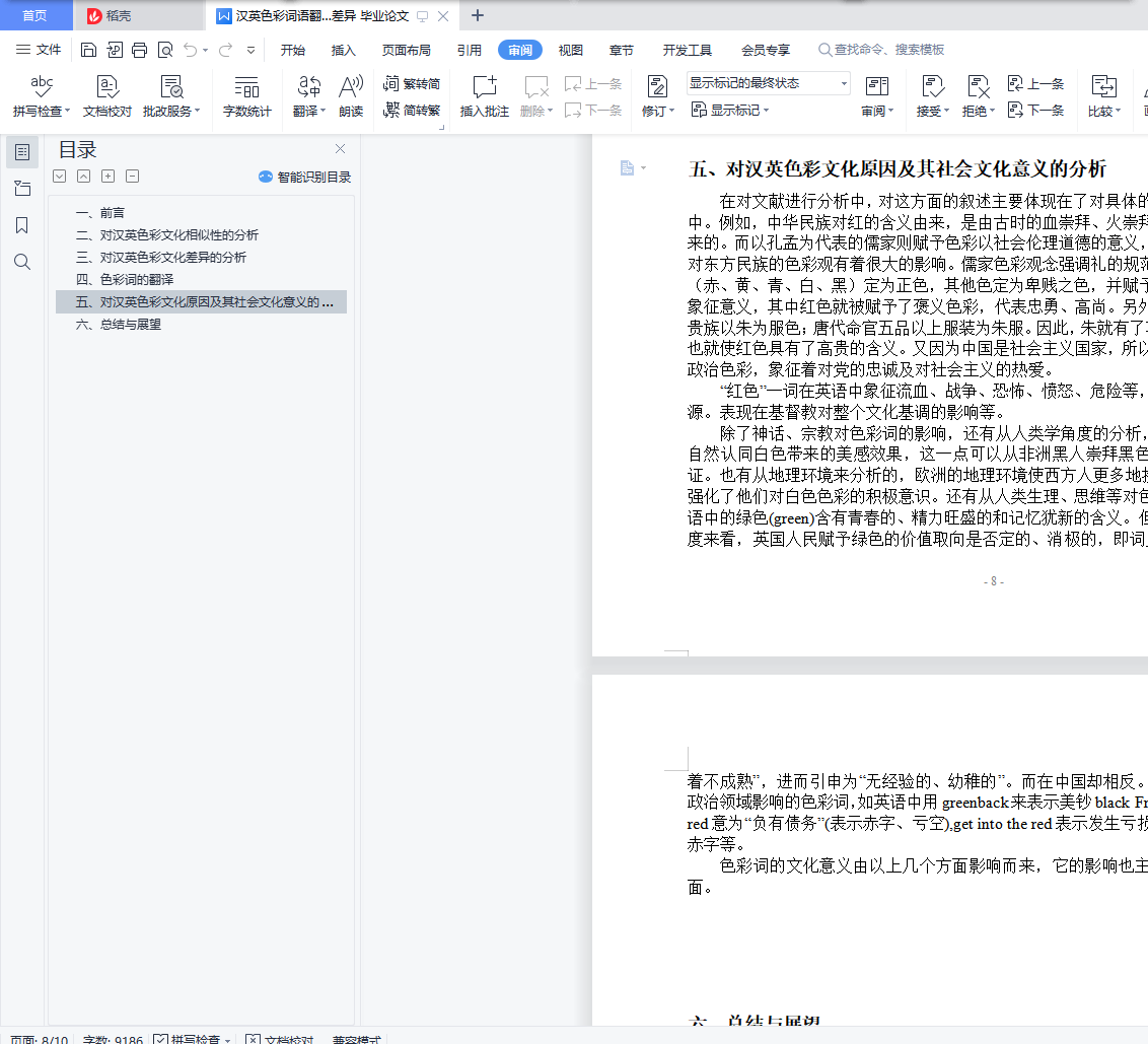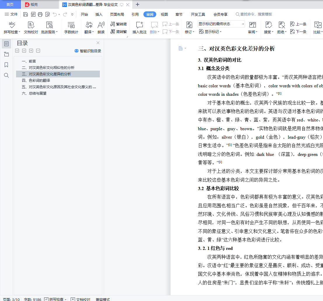 汉英色彩词语翻译中的差异摘要色彩是人类认知世界的一个重要部分,它不仅传递着物体的本质属性,还承载了很丰富的社会属性、文化内涵和时代特征。人们对色彩的感受和定义不可避免的受到本民族文化传统、时代变迁、历史地理等多方面的影响,不同民族对色彩词,尤其是在基本色彩词的使用就存在着差异。因此,不同文化间对基本色彩词的对比研究是一个重要的课题。关键词:色彩词;文化;比较研究;文献综述目录一、前言 - 1 -二、对汉英色彩文化相似性的分析 - 1 -三、对汉英色彩文化差异的分析 - 2 -四、色彩词的翻译 - 7 -五、对汉英色彩文化原因及其社会文化意义的分析 - 8 -六、总结与展望 - 9 -