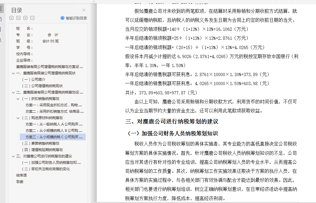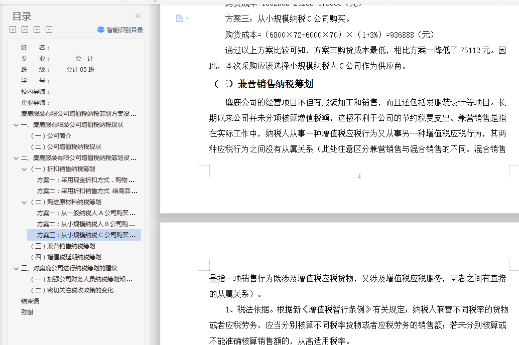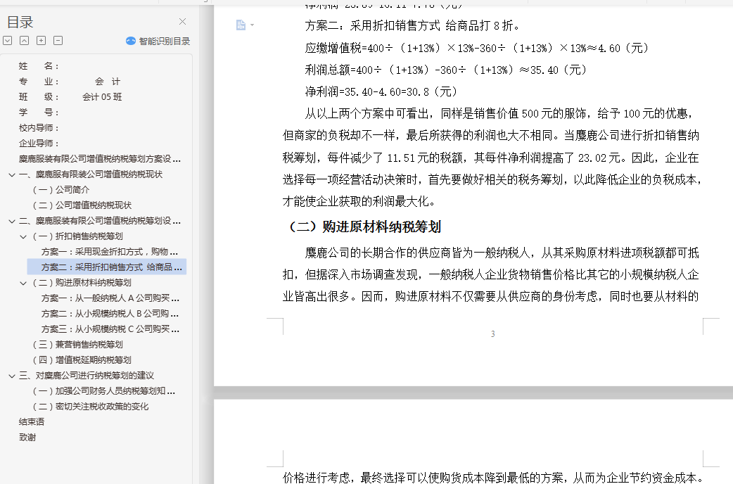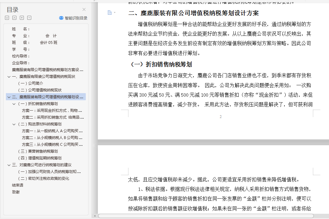 二、 麋鹿服装有限公司增值税纳税筹划方案设计 2