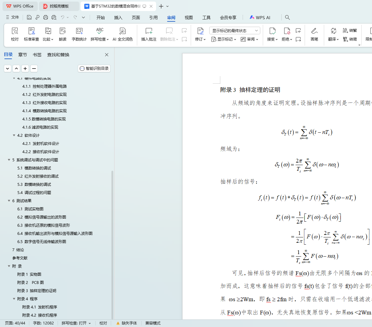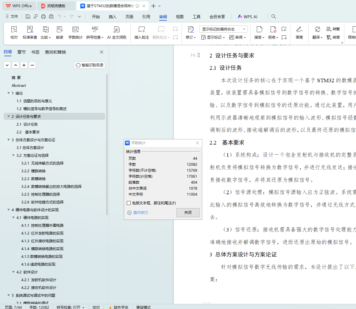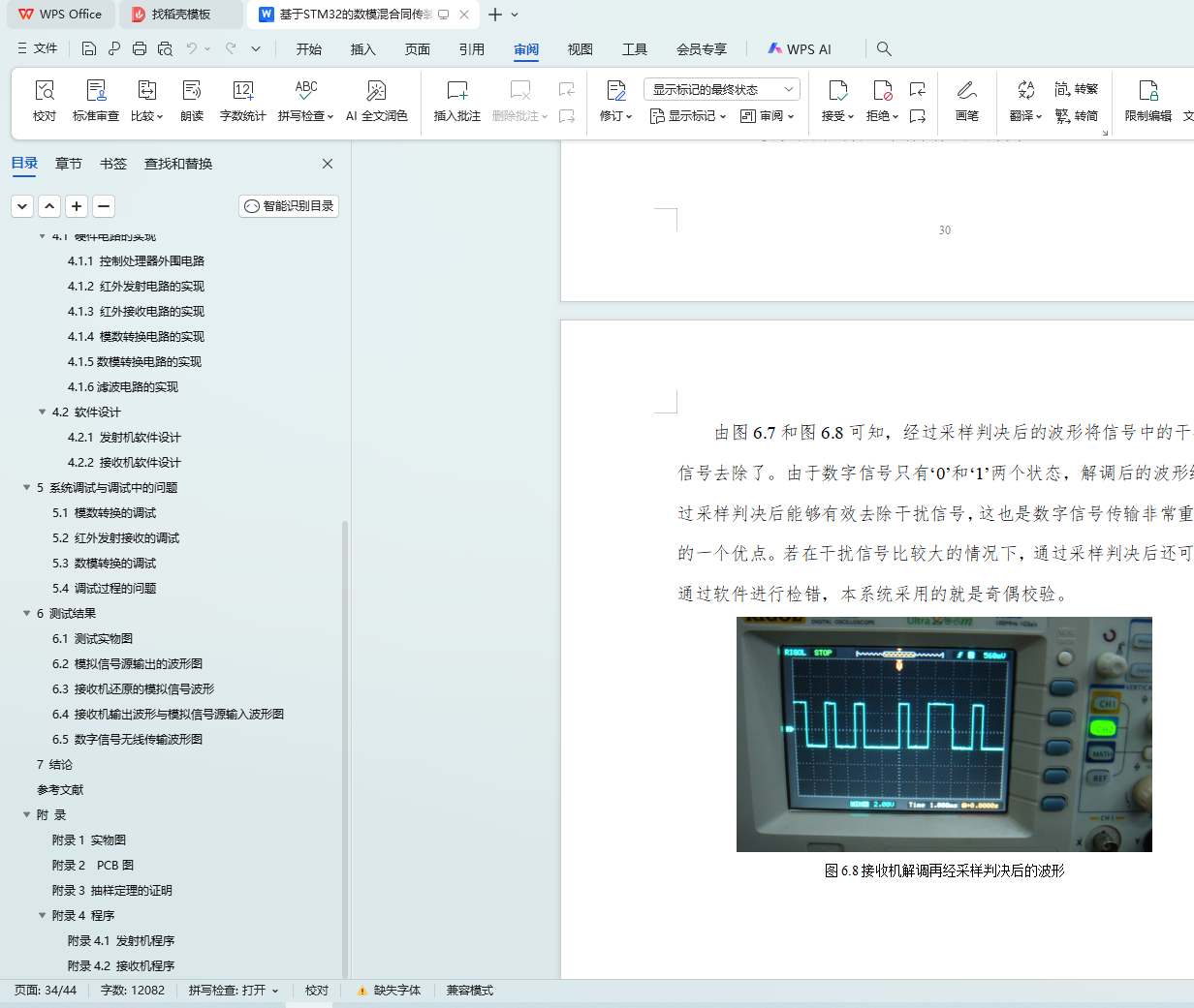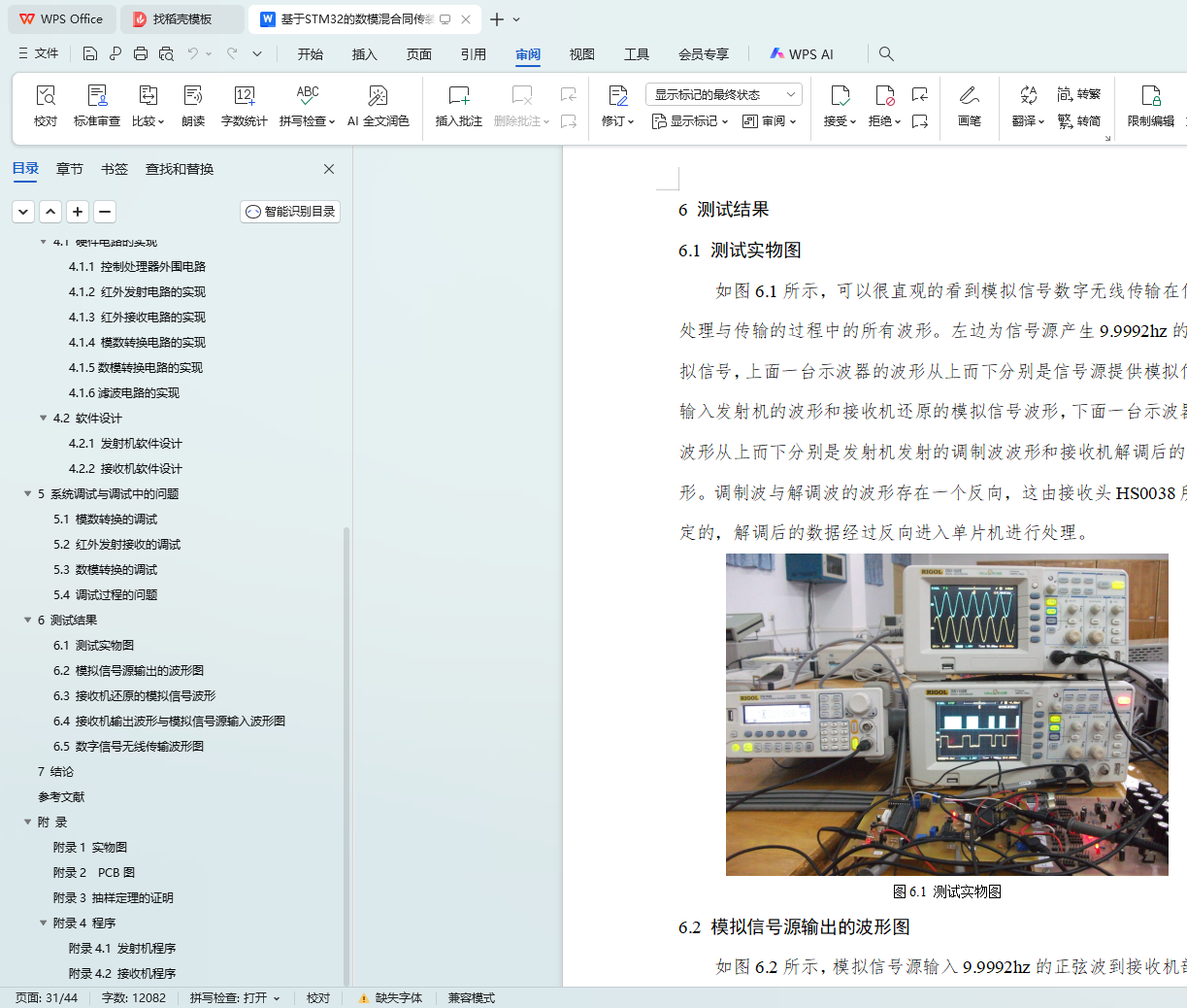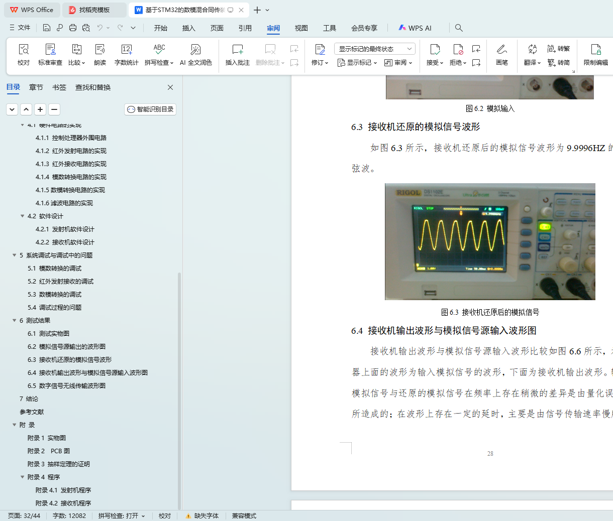 本文旨在设计与实现一款基于STM32的数模混合同传装置,该装置能够实现对模拟信号与数字信号的同步传输与处理。首先,本文简述了模拟信号与数字信号的基本概念及其特点,明确了数模混合传输的必要性和应用场景。随后,根据设计任务与要求,制定了总体方案设计,并详细论证了方案的可行性。装置设计过程中,采用了STM32微控制器作为核心控制单元,结合模拟信号调理电路和数字信号处理模块,实现了对信号的采集、转换、传输及处理。通过实物制作与测试,验证了装置的可靠性和稳定性,并对其进行了优化与调试。本文的研究成果不仅为数模混合信号的传输提供了有效的解决方案,也为相关领域的研究与应用提供了参考。