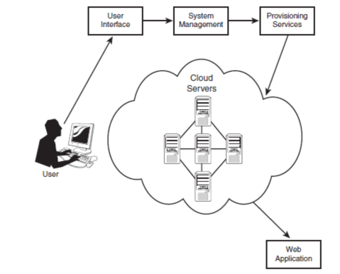 This cloud architecture is deceptively simple, although it does require some intelligent management to connect all those computers together and assign task processing to multitudes of users. As you can see in Figure 1.2, it all starts with the front-end interface seen by individual users. This is how users select a task or service (either starting an application or opening a document). The user’s request then gets passed to the system management, which finds the correct resources and then calls the system’s appropriate provisioning services. These services carve out the necessary resources in the cloud, launch the appropriate web application and either creates or opens the requested document. After the web application is launched, the system’s monitoring and metering functions track the usage of the cloud so that resources are apportioned and attributed to the proper user(s).