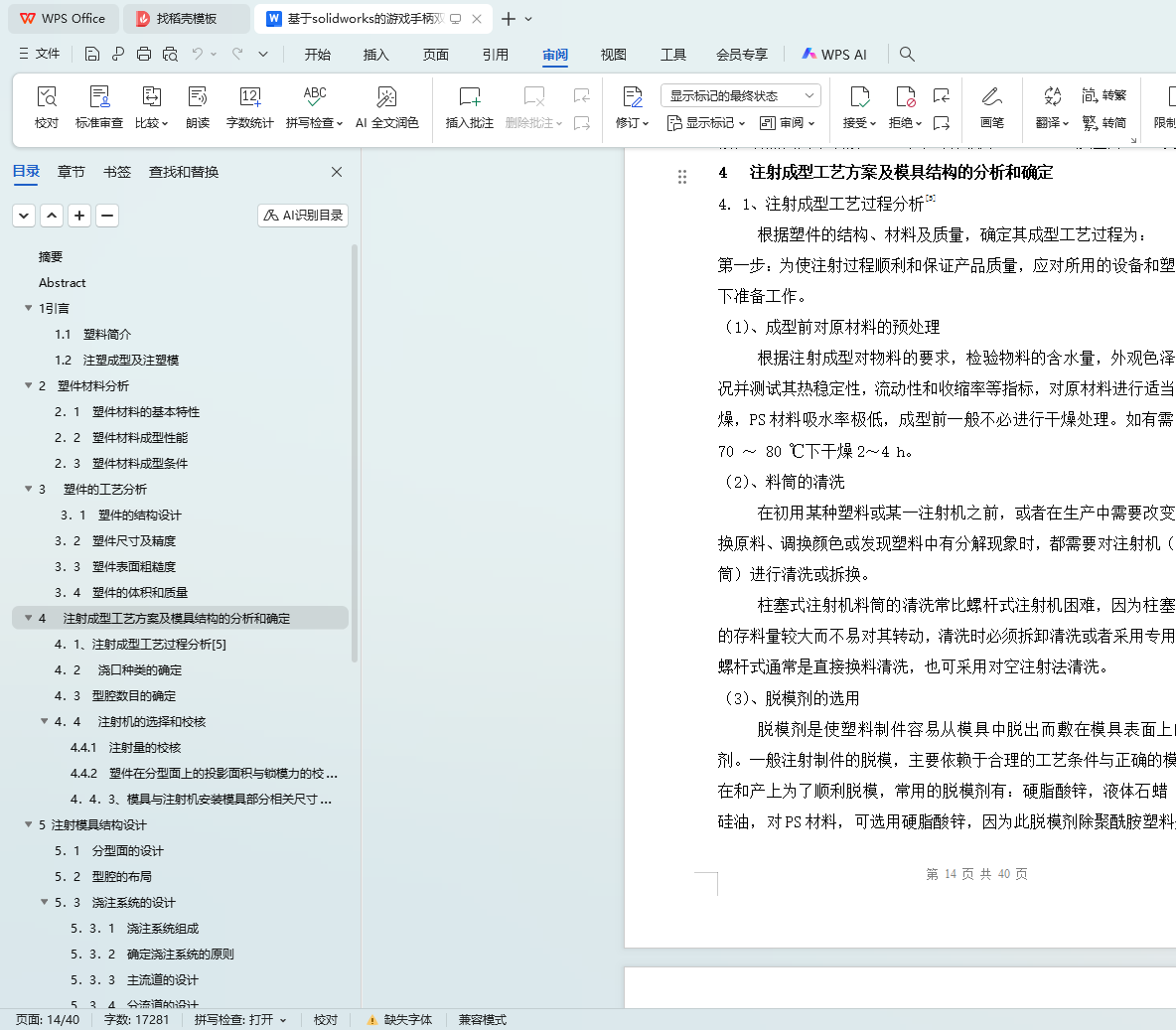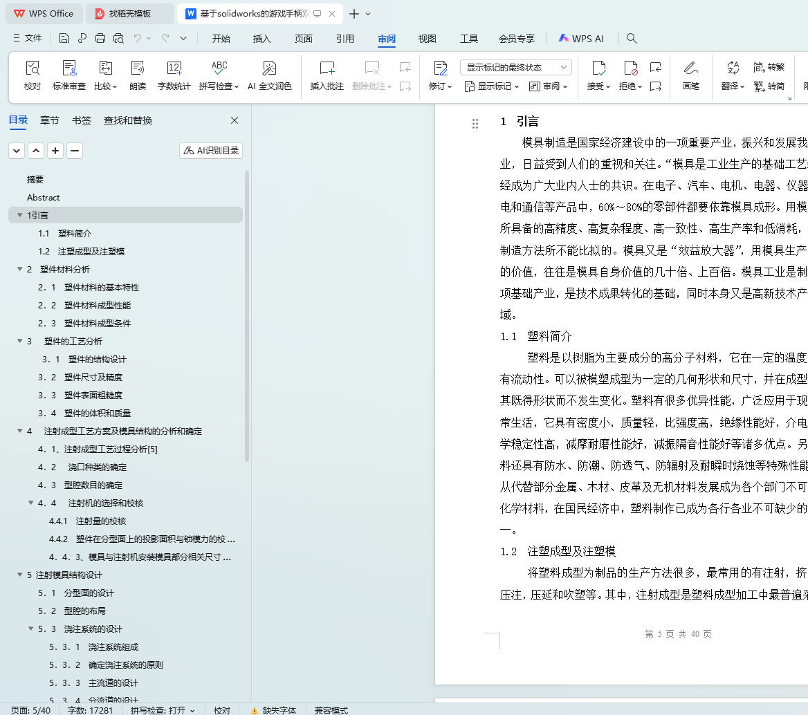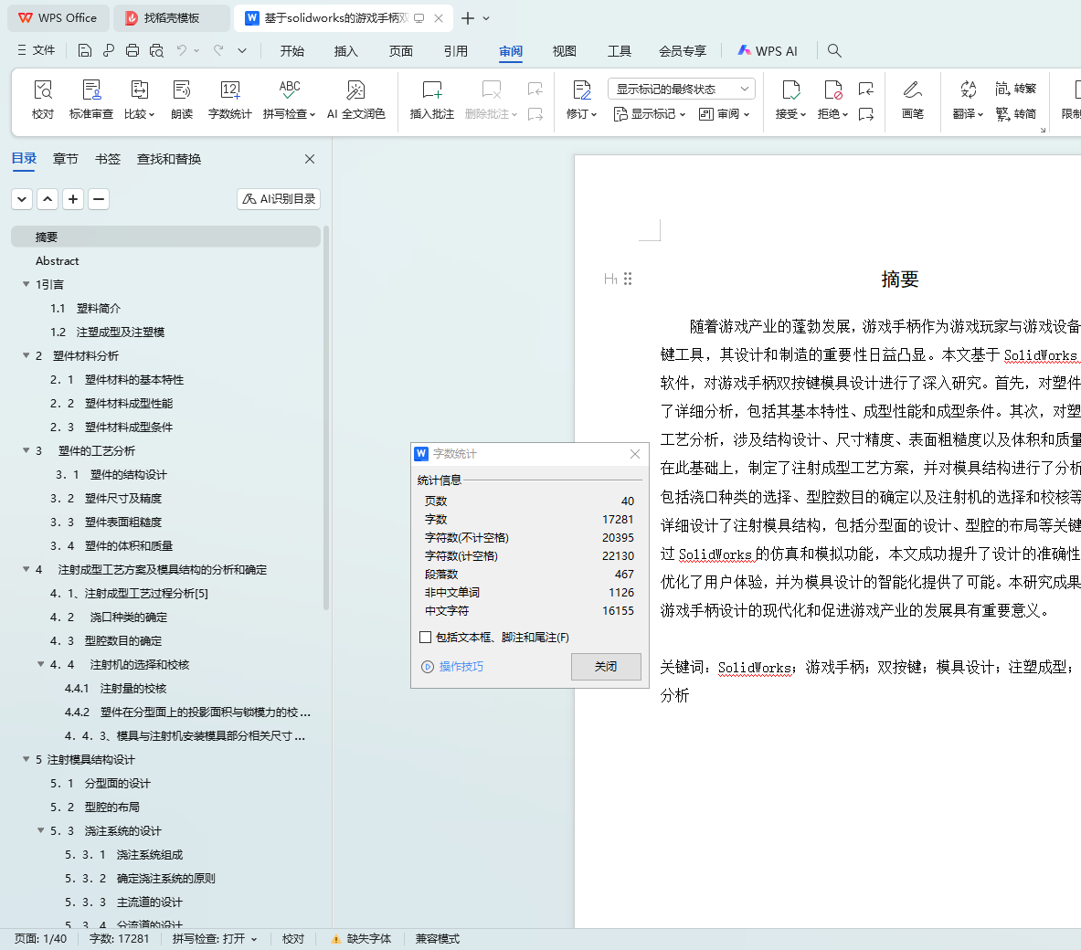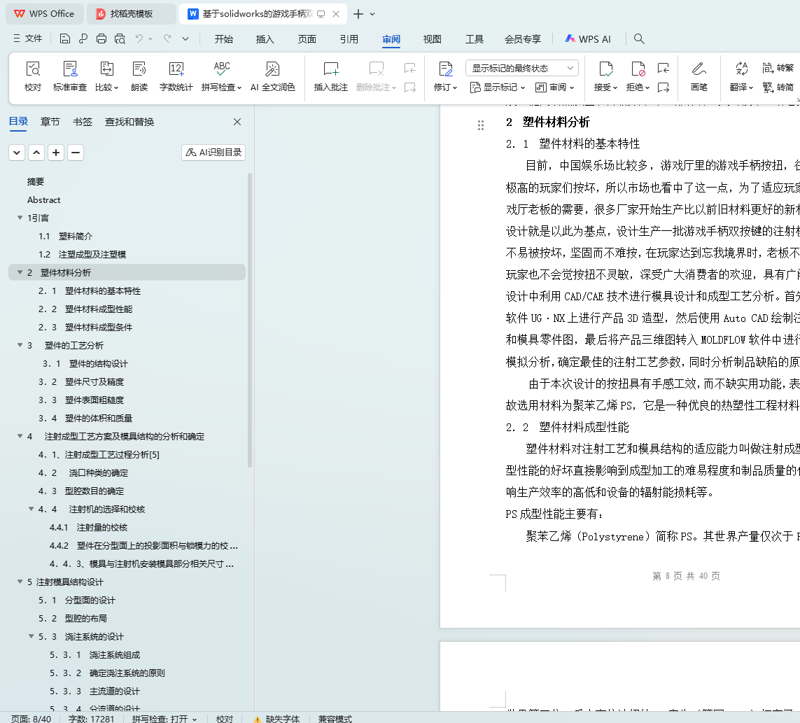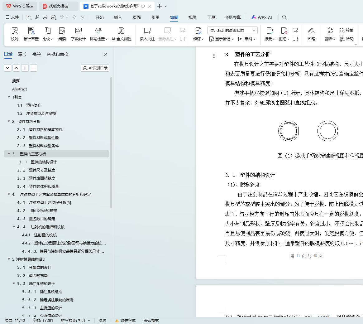 关键词:SolidWorks;游戏手柄;双按键;模具设计;注塑成型;塑件材料分析