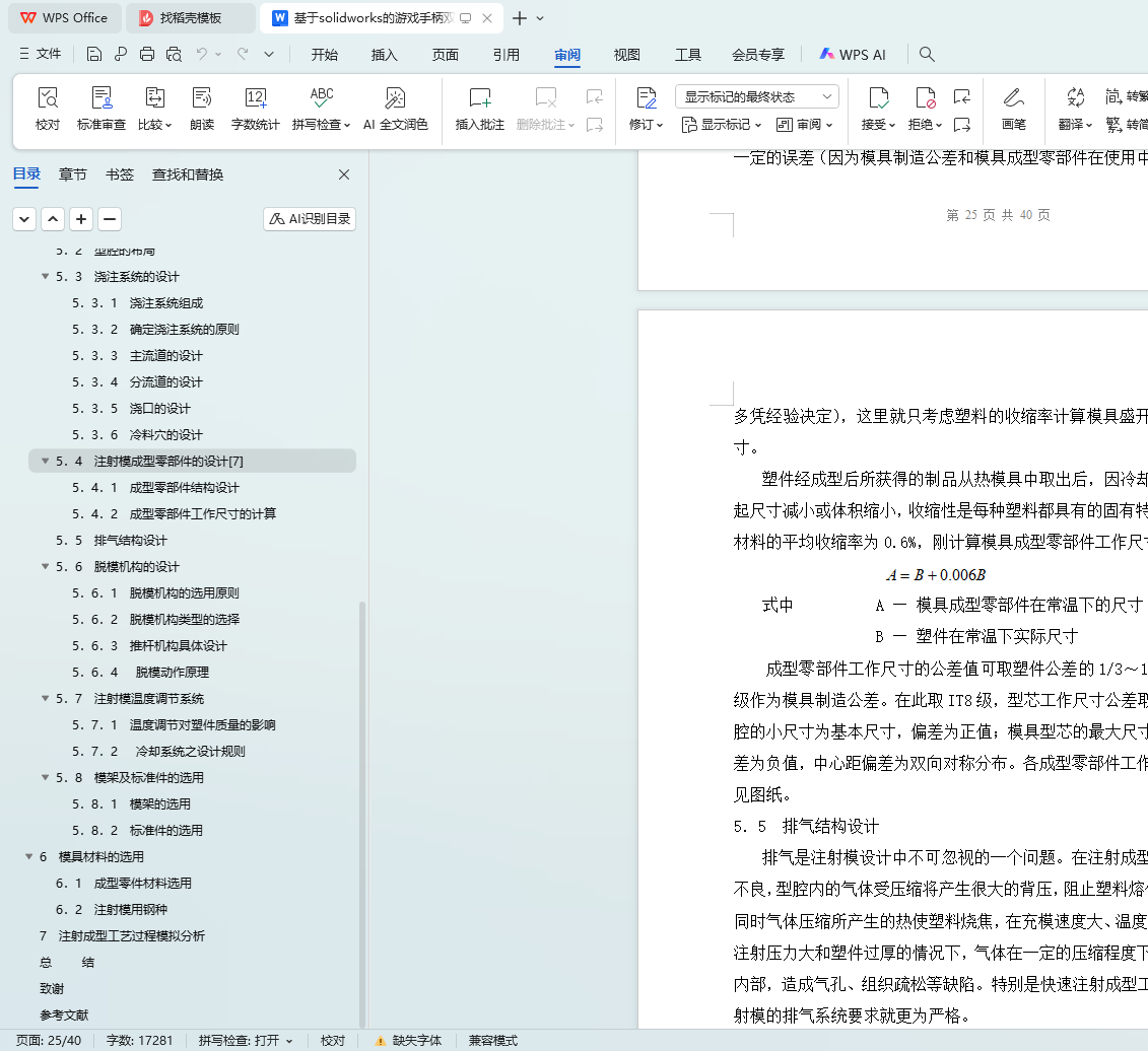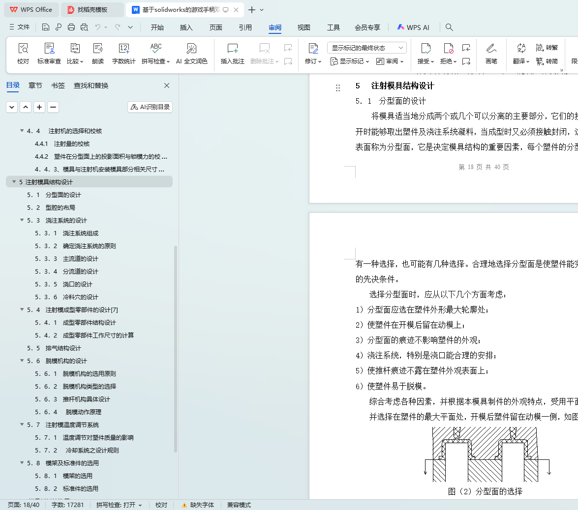 5.1 分型面的设计