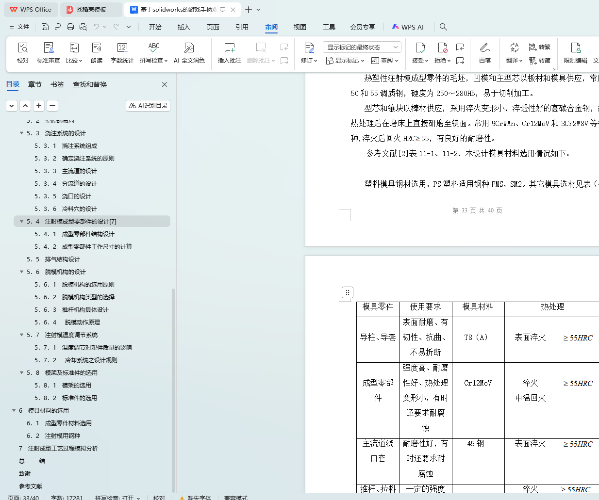 6.1 成型零件材料选用