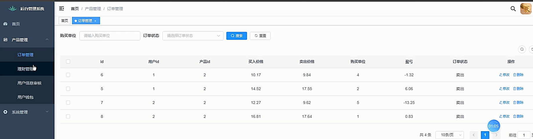 Investment and financial management are important components of the modern economic system, playing an indispensable role in personal wealth appreciation and risk management. In today's increasingly complex financial environment, efficient investment and wealth management information management is particularly crucial. This article implements an investment and wealth management system based on Spring Boot, which uses tools such as MySQL database to efficiently manage investment and wealth management related information. The system covers multiple modules, including user side: user information review module, user wallet module, order management module, investment and wealth management module, administrator side: product management module, order management module, system management module, etc. When designing and implementing an investment and wealth management system based on Spring Boot, multiple factors need to be considered comprehensively to ensure the aesthetics and smoothness of the system interface, as well as its comprehensiveness, practicality, and user account security.