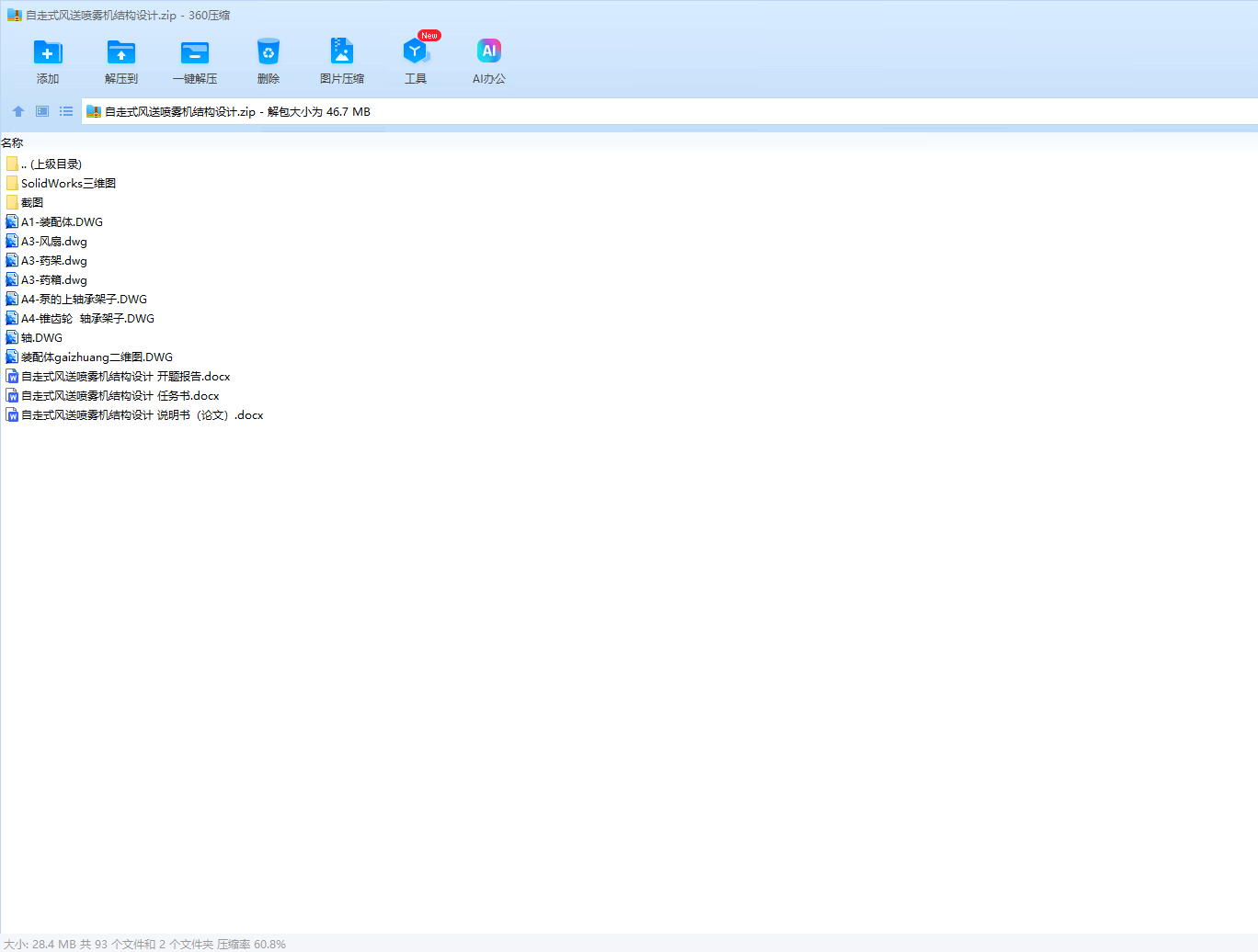关键词:自走式 ;喷雾机;风扇助力;cad图纸;Sw三维图