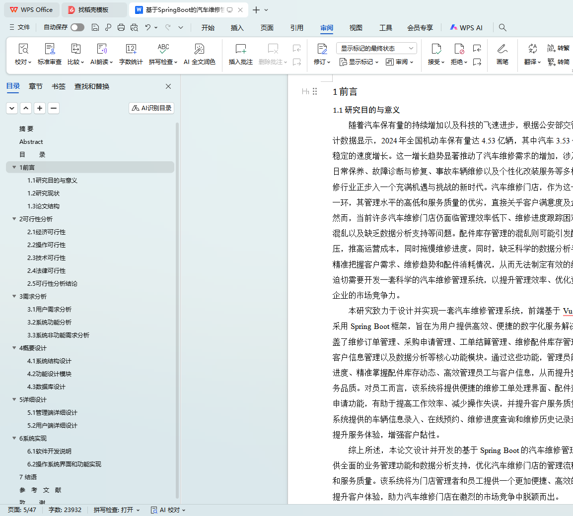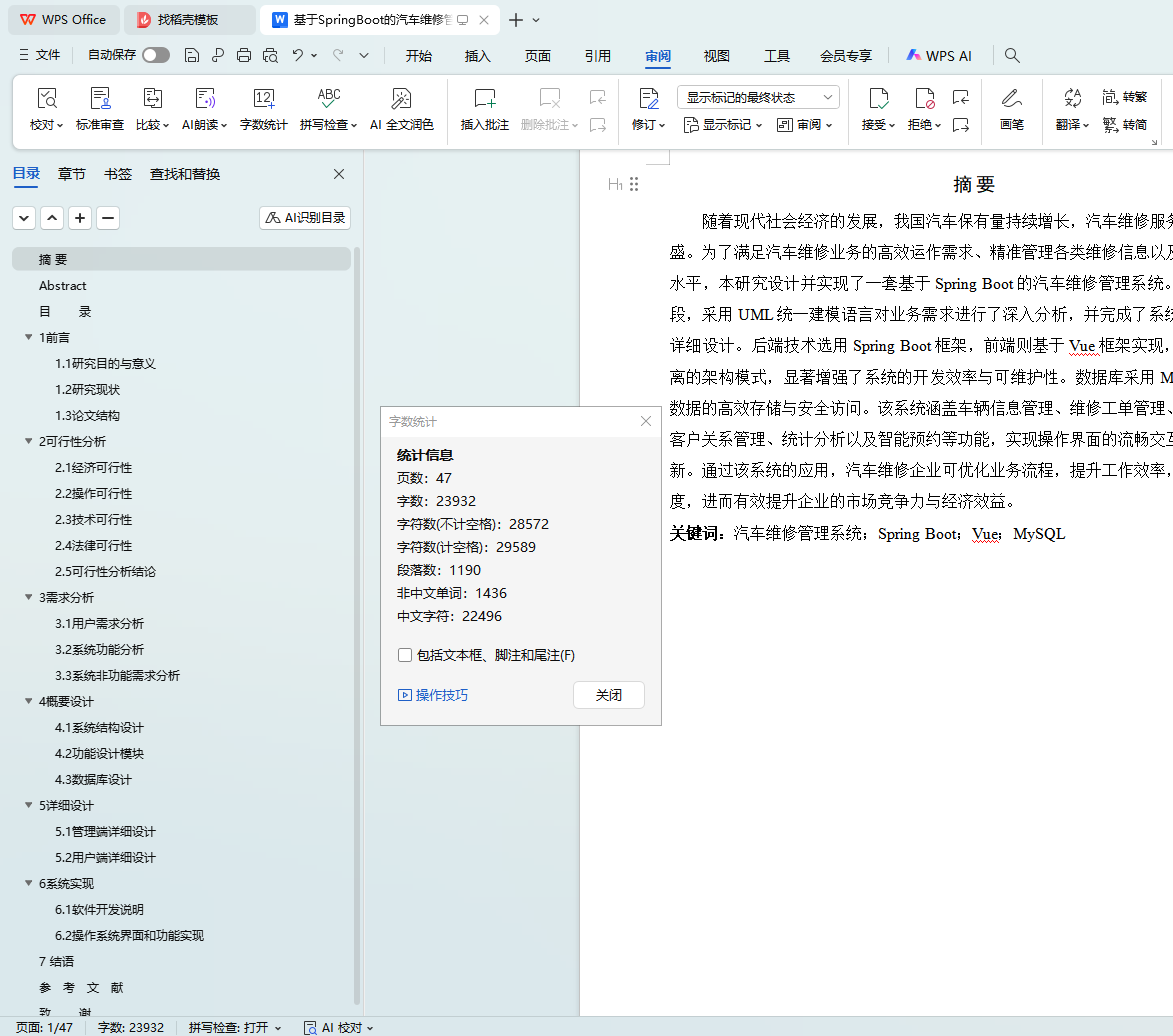 关键词:汽车维修管理系统;Spring Boot;Vue;MySQL