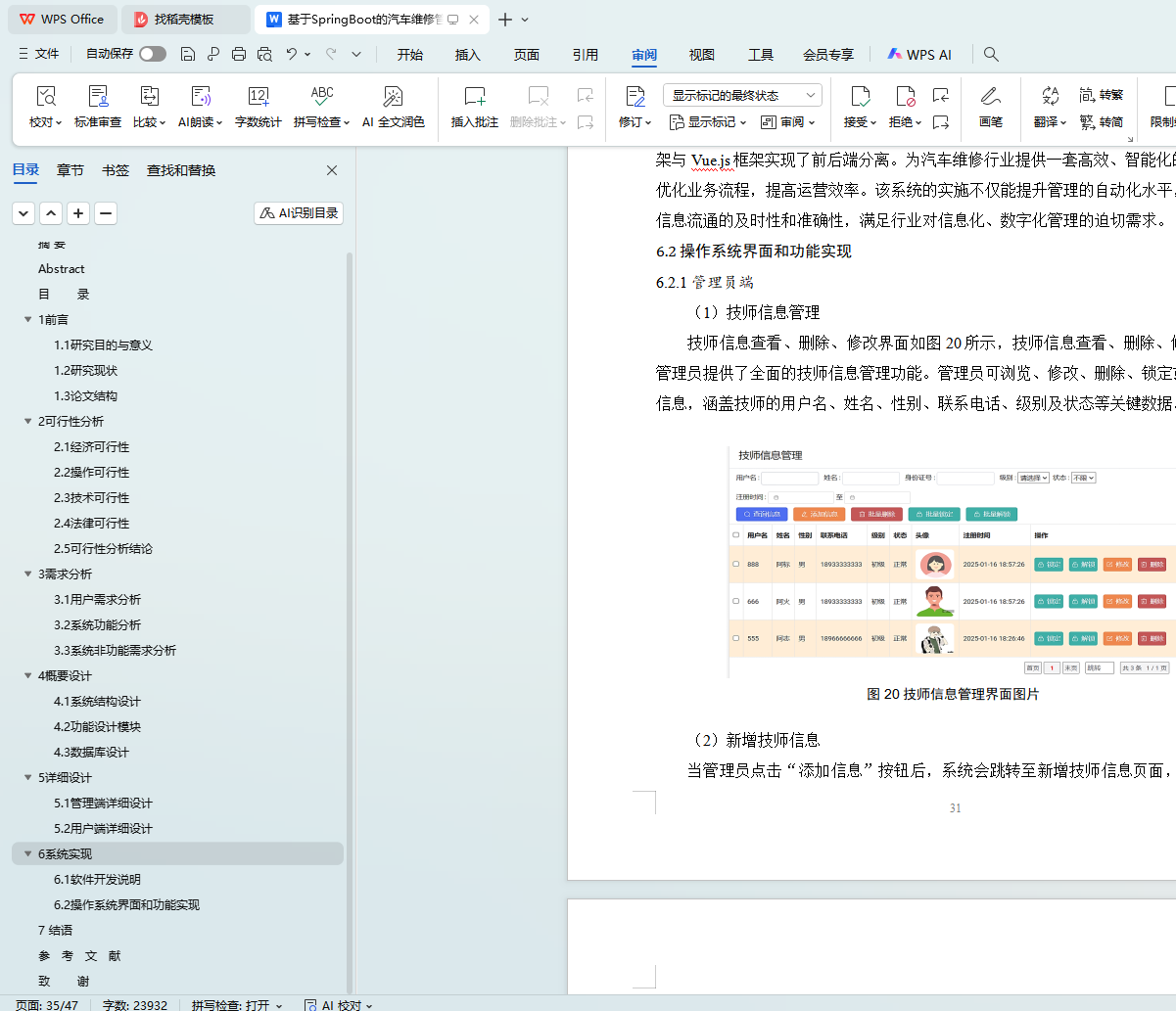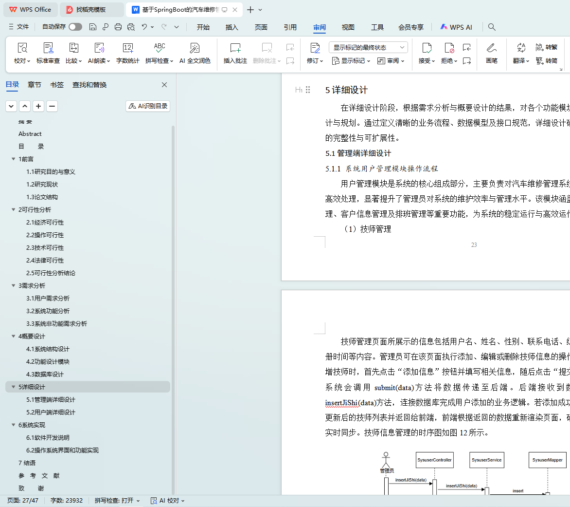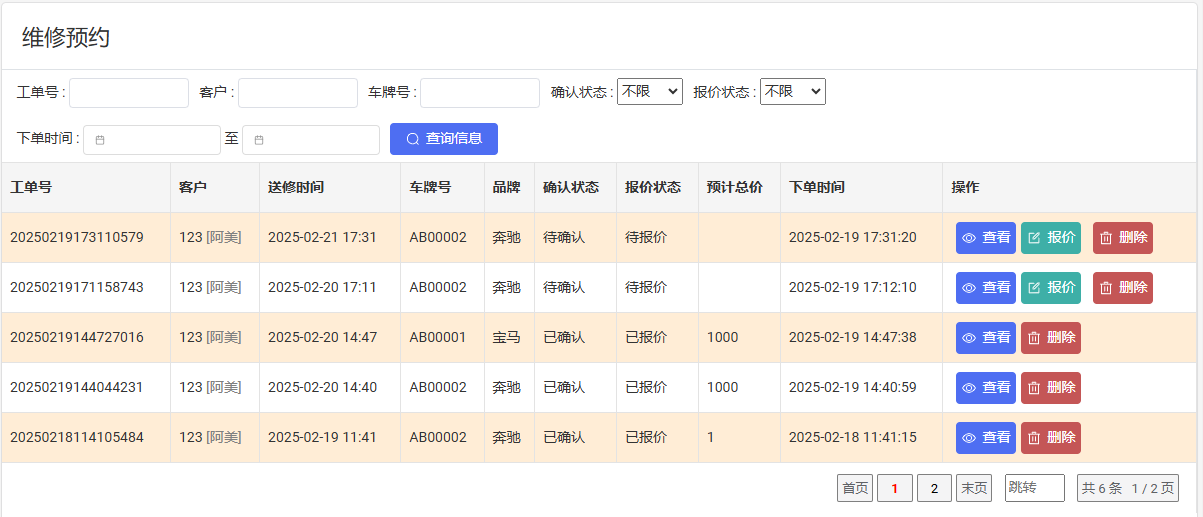 随着现代社会经济的发展,我国汽车保有量持续增长,汽车维修服务的需求日益旺盛。为了满足汽车维修业务的高效运作需求、精准管理各类维修信息以及提升客户服务水平,本研究设计并实现了一套基于Spring Boot的汽车维修管理系统。在系统开发阶段,采用UML统一建模语言对业务需求进行了深入分析,并完成了系统的概要设计与详细设计。后端技术选用Spring Boot框架,前端则基于Vue框架实现,通过前后端分离的架构模式,显著增强了系统的开发效率与可维护性。数据库采用MySQL,确保了数据的高效存储与安全访问。该系统涵盖车辆信息管理、维修工单管理、配件库存管理、客户关系管理、统计分析以及智能预约等功能,实现操作界面的流畅交互与数据实时更新。通过该系统的应用,汽车维修企业可优化业务流程,提升工作效率,增强客户满意度,进而有效提升企业的市场竞争力与经济效益。