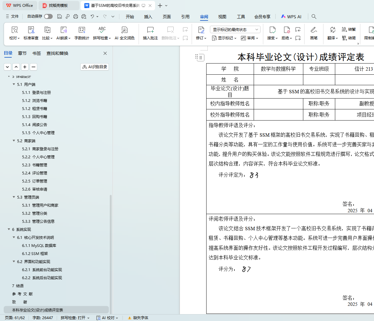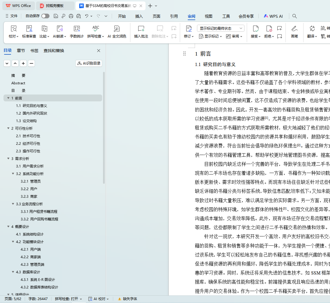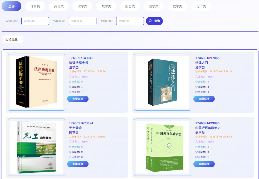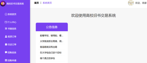 随着教育资源的日益丰富和高等教育的普及,大学生群体在学习和科研过程中产生了大量的书籍需求。然而,由于课程结束或毕业离校等原因,许多书籍在使用一段时间后便被闲置,这造成了大量资源的浪费。基于此,本文基于Spring、SpringMVC和MyBatis(简称SSM)框架开发一个高校旧书交易系统。该系统通过详细的需求调研,明确用户具体需求,实现了书籍租赁、回购与销售等多种交易模式。开发时采用前后端分离的架构设计,完成了租赁书籍、订单审核、用户管理等核心功能的开发。在平台中,提供详尽的书籍分类与标签系统,便于用户快速定位所需书籍,并且支持便捷的书籍信息发布与查询功能,方便用户快速找到感兴趣的书籍。本系统集成书籍的租赁、回购和销售等多种功能于一体,为大学生群体提供一个便捷、安全的交易平台。为二手书籍的流通与再利用提供了全新的模式,具有较高的实用价值与推广意义。