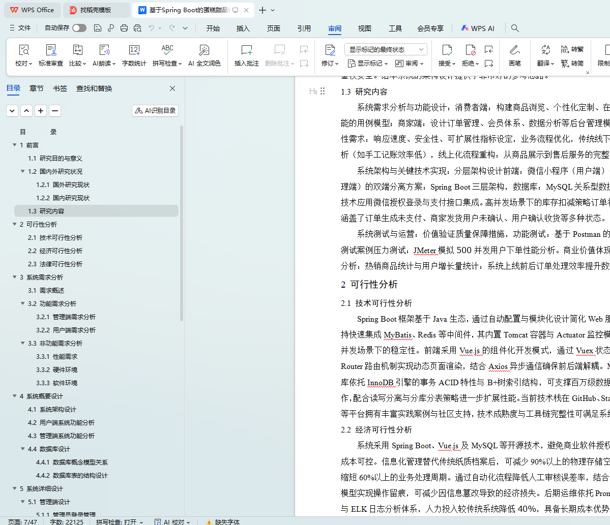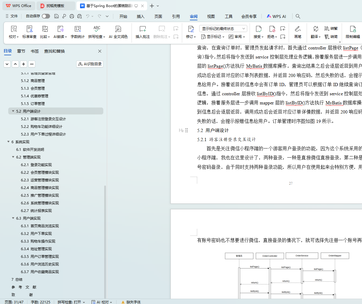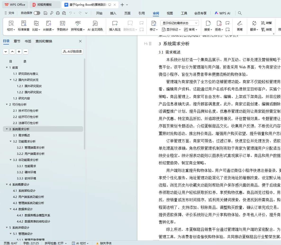 With the growth of the country's economy and the improvement of the quality of life, people's demand for cakes and desserts has gone beyond the material level and reflects more spiritual pursuits. However, traditional shopping requires customers to pick and purchase in person, which is time-consuming and difficult to meet personalized needs. Merchants face fierce competition in the market and inefficient manual order processing, which limits the quality and competitiveness of their services. To this end, this project has developed a cake dessert sales system based on the Spring Boot framework, which is built with the Vue framework at the front end and relies on Spring Boot at the back end to ensure the stability and scalability of the system. The user interface is realized through the WeChat applet, and the database uses MySQL for data storage, which is a very safe and efficient storage method, which can store a large amount of user data, and the management background includes functions such as member management, order management, evaluation management and commodity management to help merchants optimize business processes. User-side users can browse goods, collect goods, receive coupons, and place orders for goods, so that they can buy cakes and desserts online without leaving home, providing a convenient and personalized shopping experience.